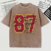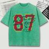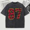 Красная футболка с принтом номера 87, выстиранная, мужская, свободная, мягкая, удобная, хлопковая, с коротким рукавом, унисекс, с круглым вырезом, уличная одежда