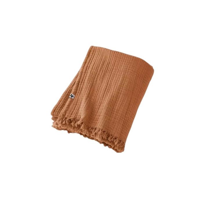 Plaid quadruple gaze de coton 130 x 160 cm Gaia abricot