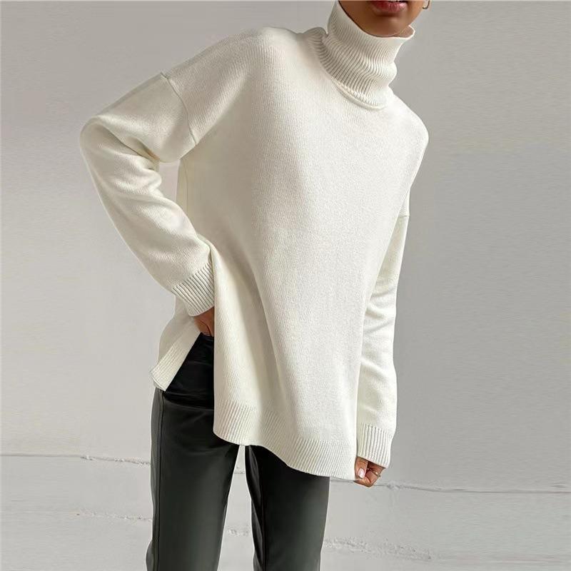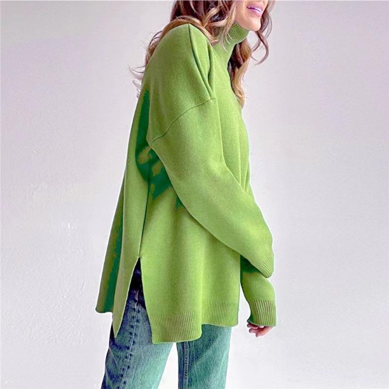 Женская мода повседневная осень-зима однотонный принт длинный рукав высокий ворот свитера