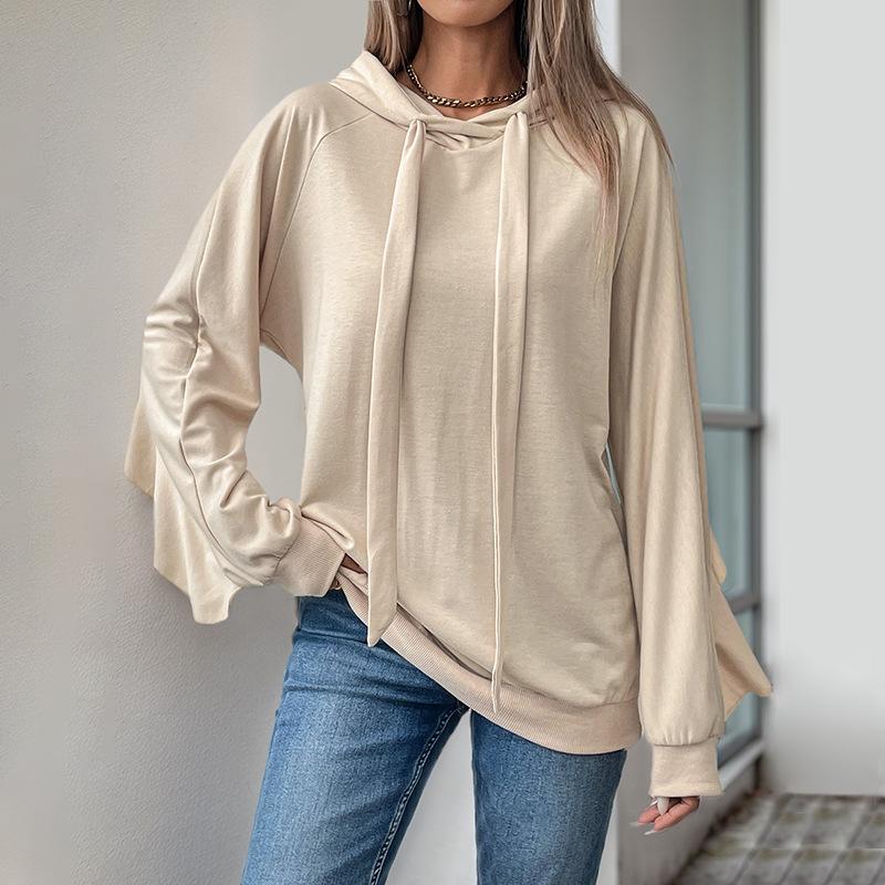 Женская мода повседневная осень-зима однотонный принт длинный рукав с капюшоном пуловеры и длинные рукава