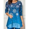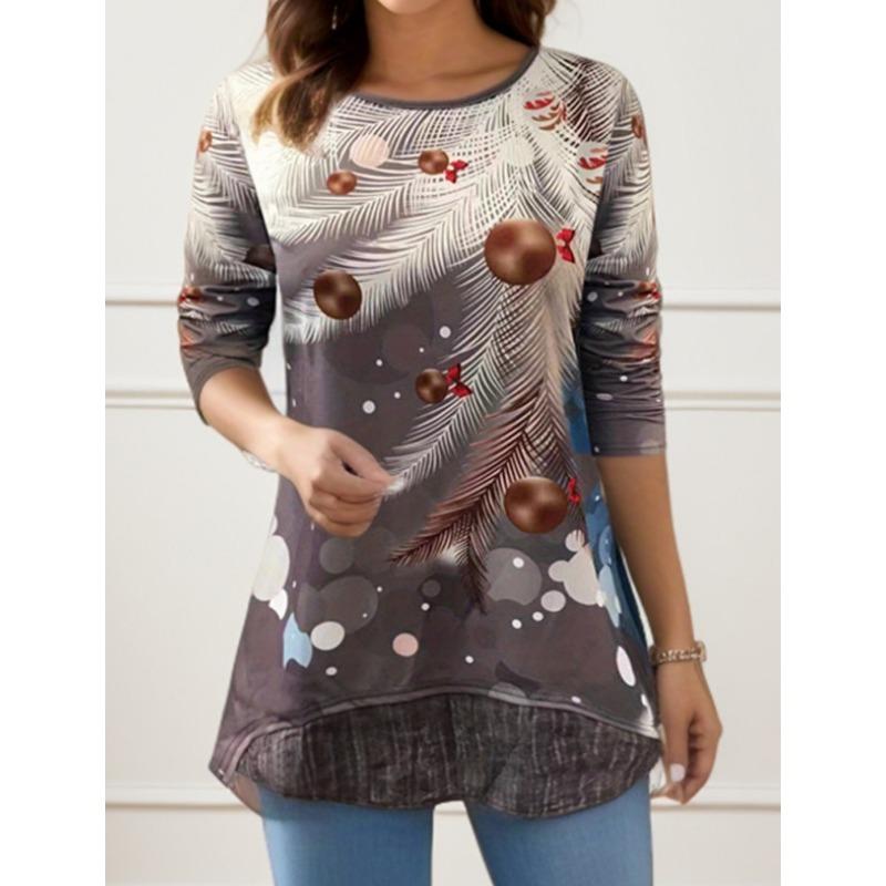 Женская мода повседневная весна осень рождественская принт длинный рукав блузки и рубашки с круглым вырезом