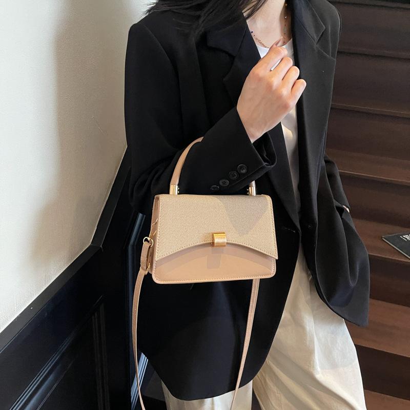 Свежая и простая женская текстура 2025 лето новая повседневная темпераментная вставка на одно плечо через плечо портативная маленькая квадратная сумка бар