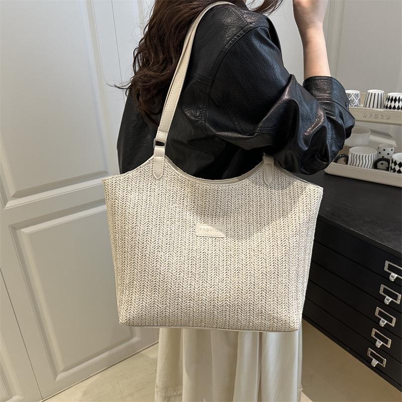 Повседневная текстура простая 2025 новый тканый модный тренд летний дизайн большая вместимость женская плечевая сумка-тоут