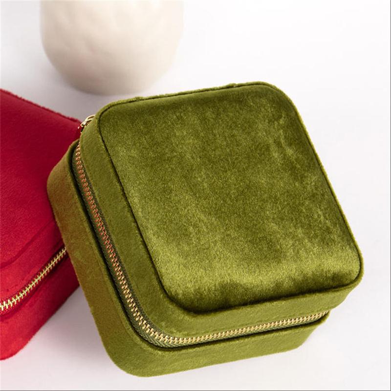 1 шт. Зеленая бархатная дорожная шкатулка для хранения ювелирных изделий с зеркалом, для ожерелий, колец, серег, на молнии, органайзер, кейс для демонстрации ювелирных изделий