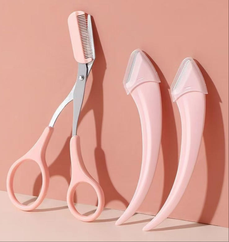 Набор триммеров для бровей из 3 штук, изогнутая бритва для бровей, ножницы для бровей с расческой, удобные простые инструменты для красоты для начинающих