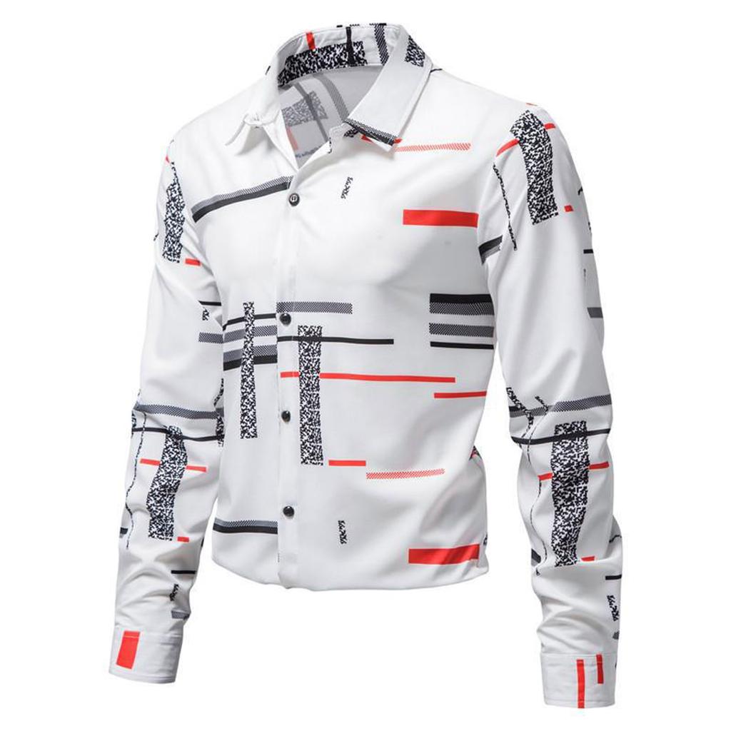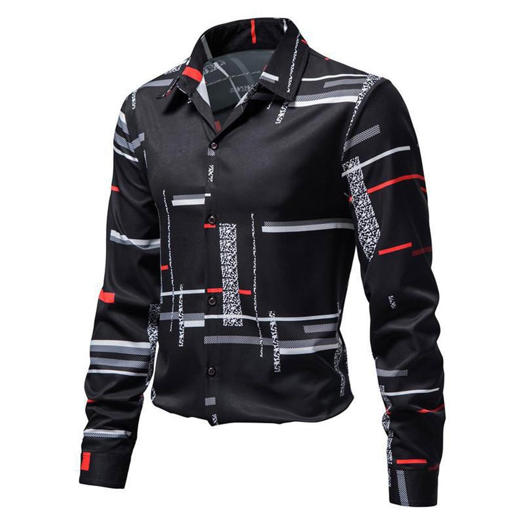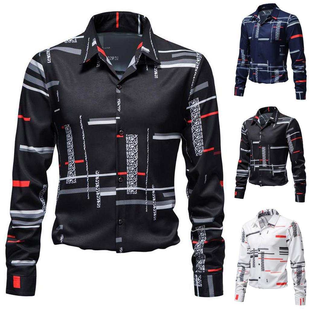 Мужская мода, повседневная рубашка с длинным рукавом и отворотом с принтом, рубашка, топ, блузка