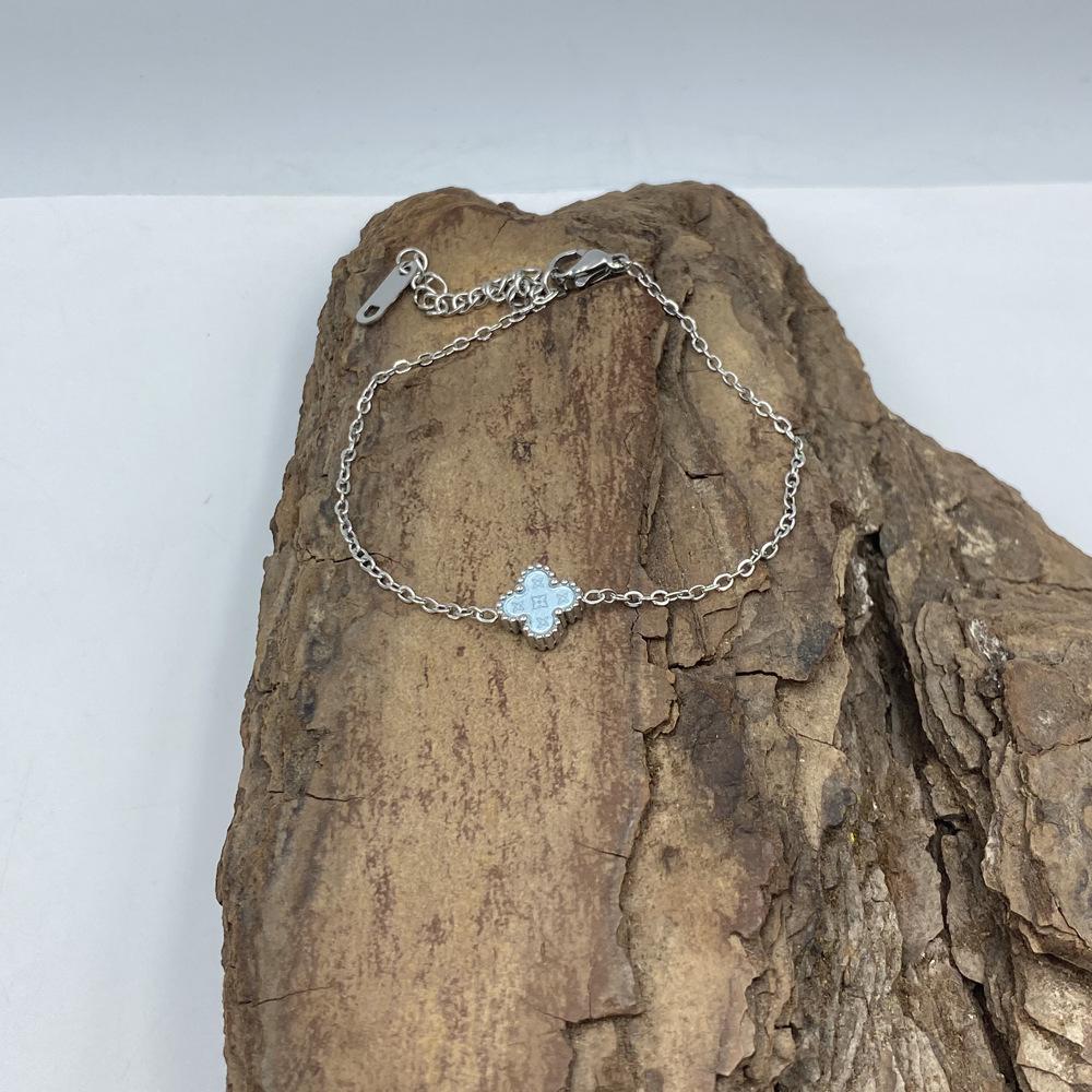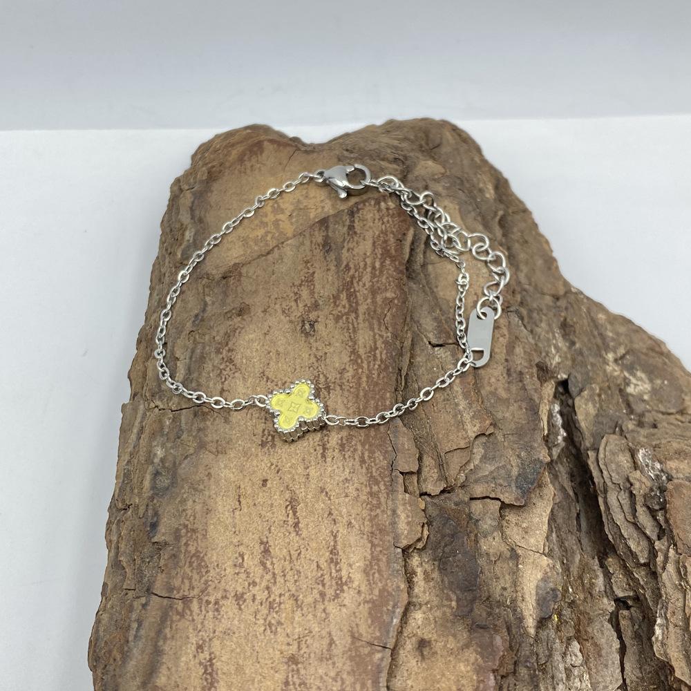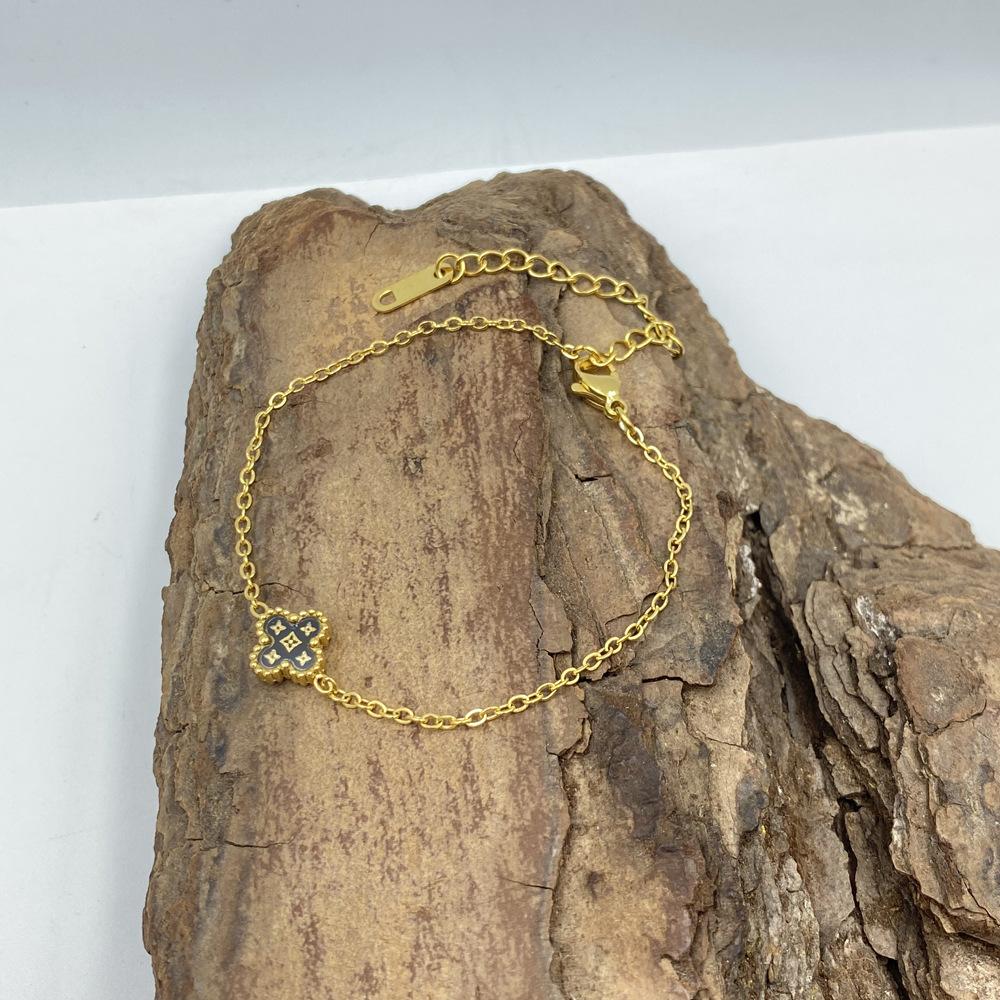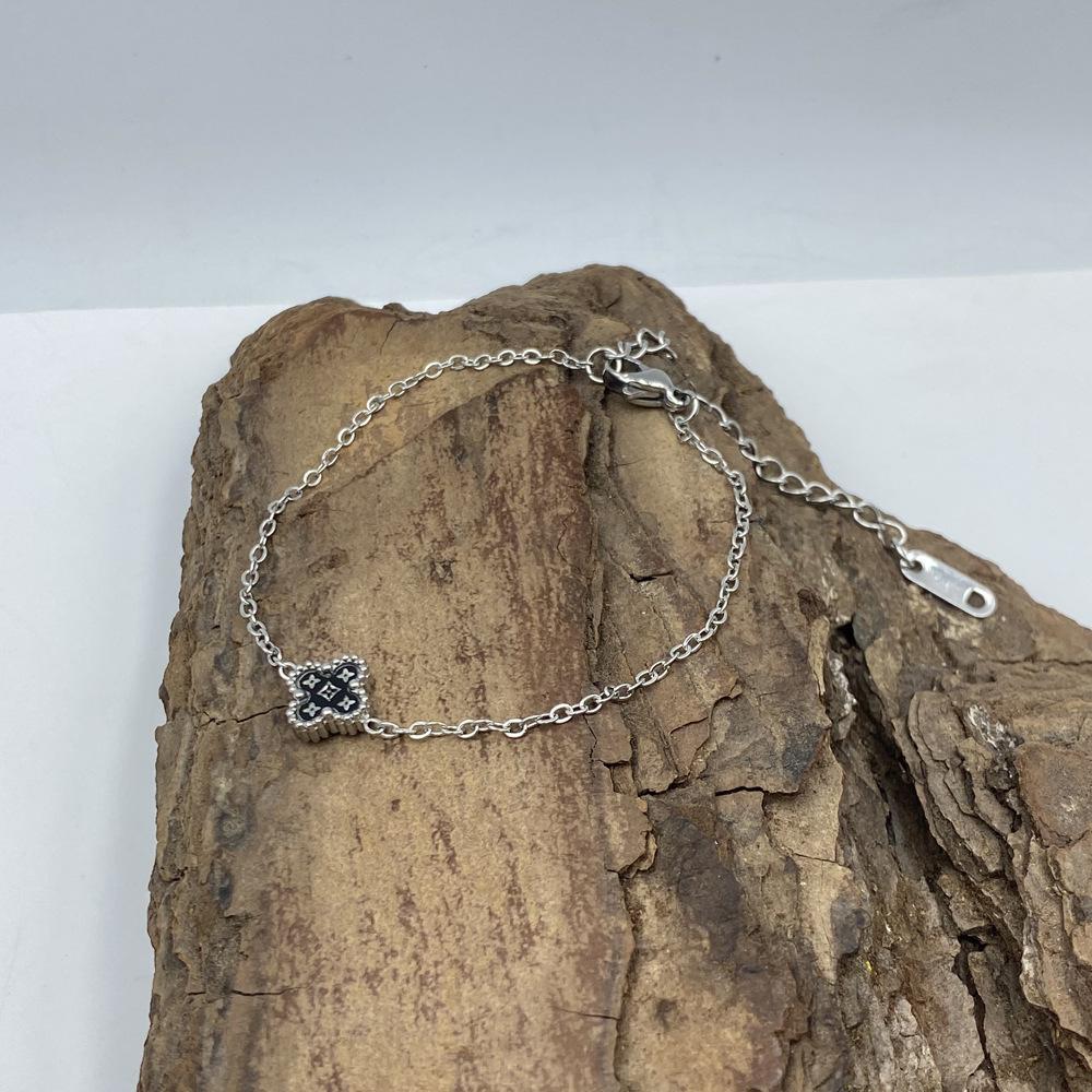 Браслет из титановой стали 9 мм с четырехлистным клевером и узором в виде звезд. Браслет с четырехлистным клевером на удачу.