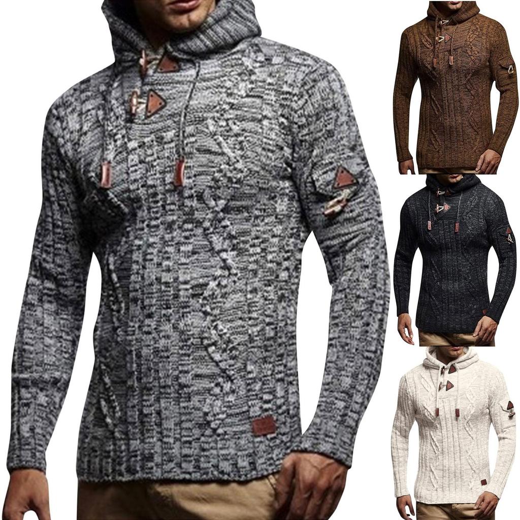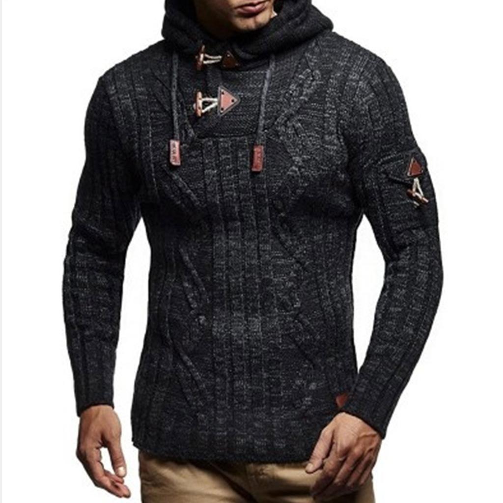 Европейский и американский мужской вязаный пуловер с капюшоном и тонким свитером на пуговицах