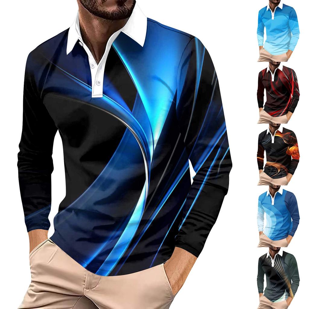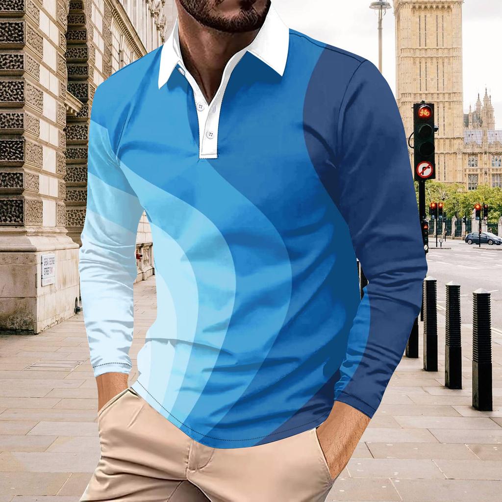 Мужская рубашка для гольфа, повседневная спортивная, с V-образным вырезом, ребристый воротник, с длинным рукавом, модная, повседневная, однотонная, однотонная, весна-лето, стандартная посадка