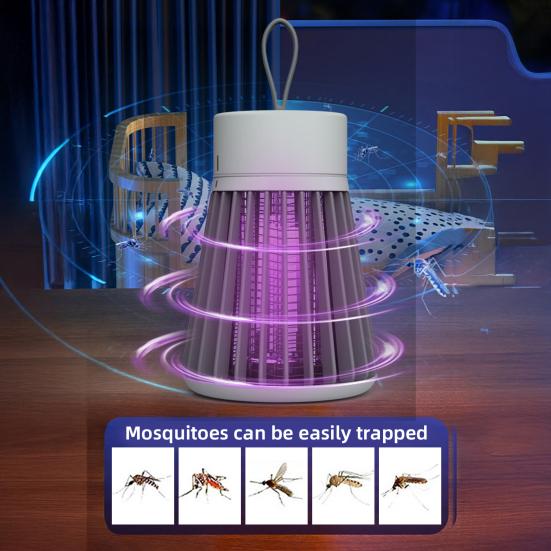 Портативный и стильный дизайн: Компактная и стильная, эта лампа для уничтожения комаров идеально подходит для использования в дороге.. Его подвесное кольцо позволяет удобно разместить его где угодно, а мягкий ультрафиолетовый свет служит ночником для дополнительной функциональности.