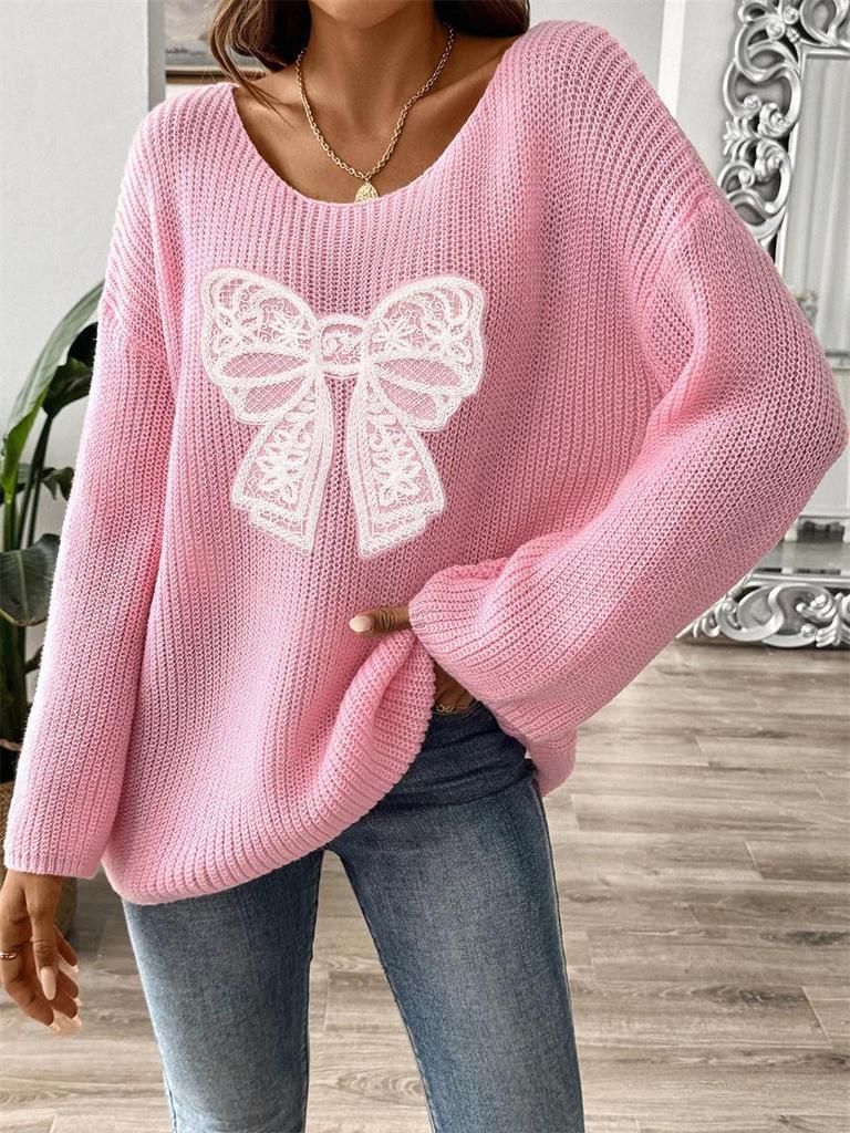 Женский европейский и американский пуловер с вышивкой в виде банта и свободными рукавами-микроклеш