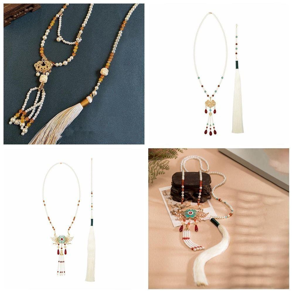 Pearl Hanfu Ruyi Pendant Ethnic Style Chinese Style Necklace Horse Face Skirt Necklace Women
