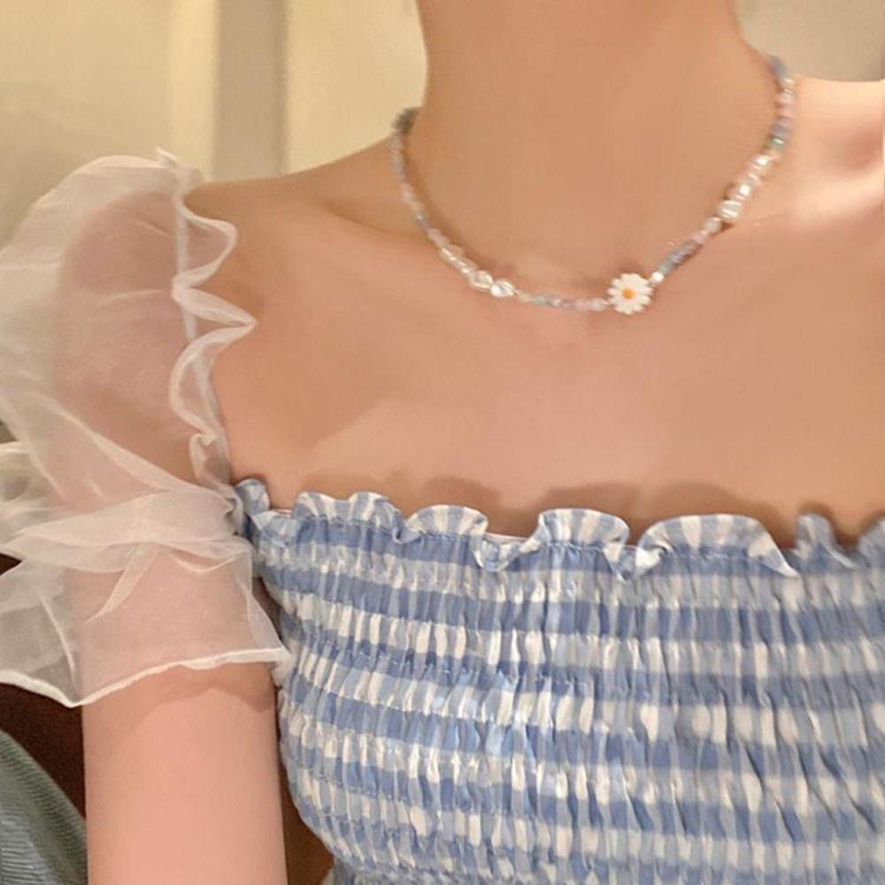 Дизайн для меньшинств Ожерелье из рисовых бусин, бусины-цветы, жемчуг, цепочка для ключиц, милый браслет с ромашками, для женщин