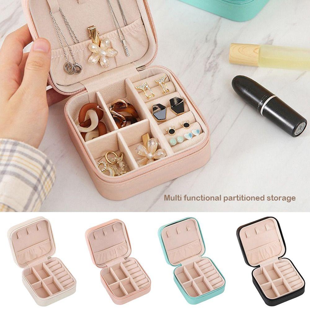 Простой дизайн Дорожная шкатулка для украшений Мини-размер Шкатулка для хранения украшений Портативный держатель для серег Домашнее использование