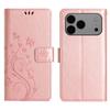 Кожаный чехол-кошелек для iPhone 17 Pro Max с тиснением "Бабочка и цветок" и ремешком