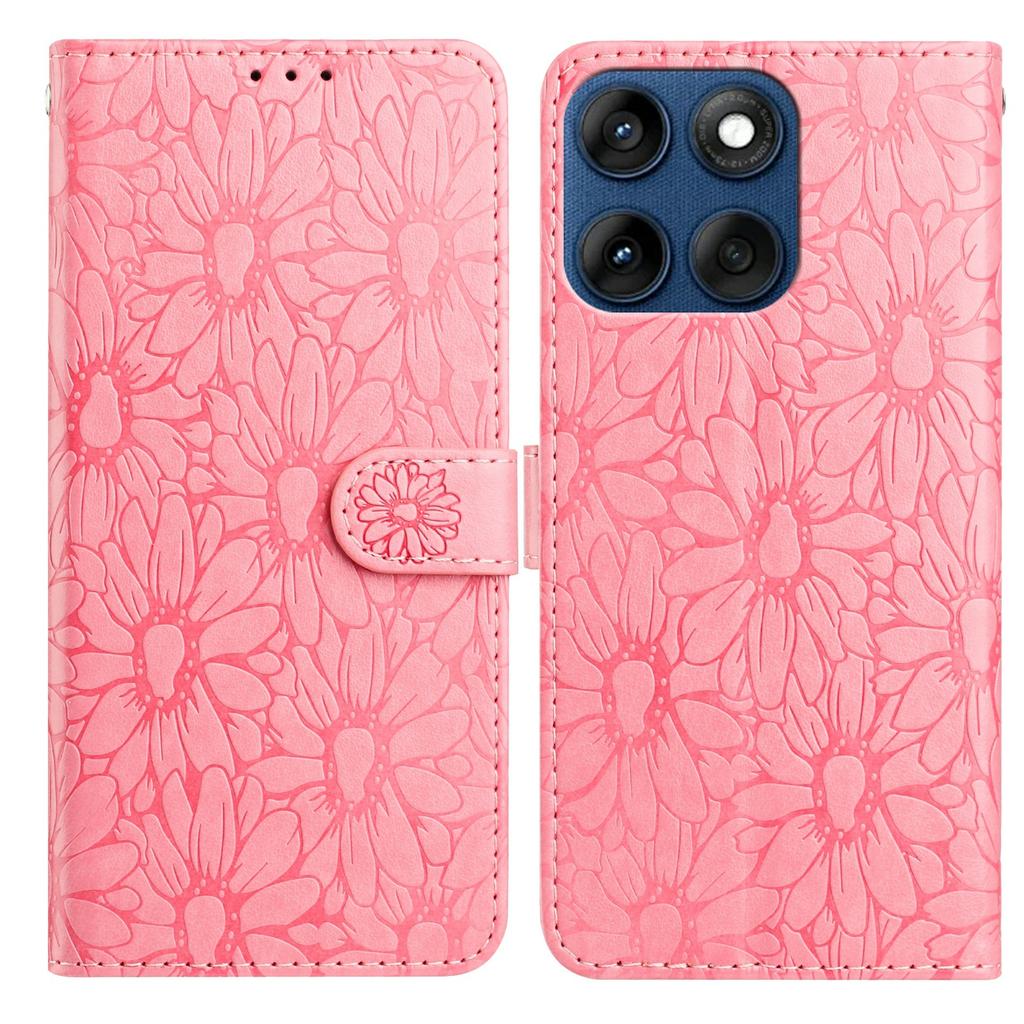 Кожаный чехол для Motorola Edge 60 5G/60 Fusion 5G/60s 5G с тиснением "Ромашка", кошелек-подставка, защитная крышка для телефона