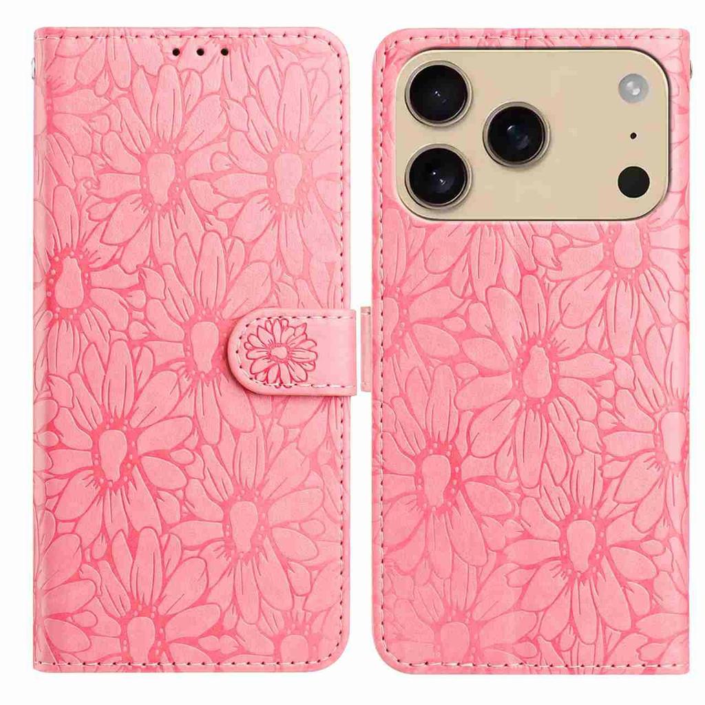Кожаный чехол для iPhone 17 Pro Max с тиснением «Маргаритка», кошелек-подставка, защитная накладка для телефона