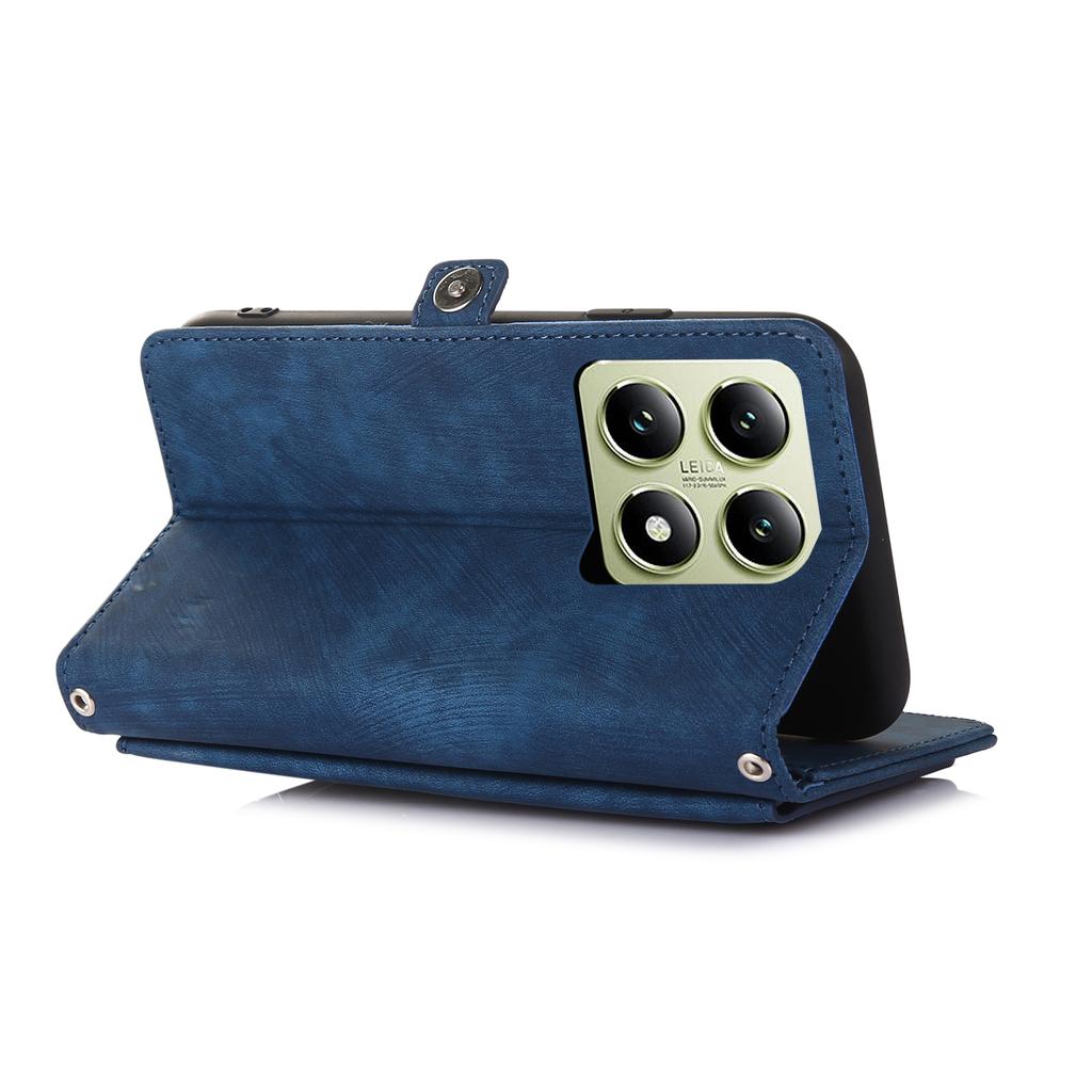 For Xiaomi 14T Case Zipper Pocket 9 Card Slots PU Leather Phone Cover with Wrist Strap