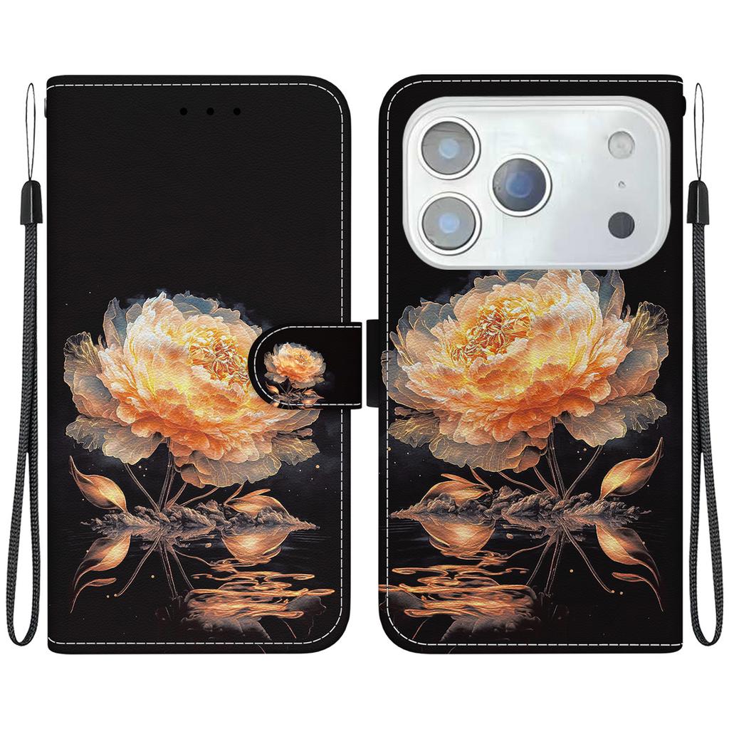 Для iPhone 17 Pro Чехол-кошелек для телефона Кожаный откидной чехол с защитой от падения Печать с рисунком с ремешком