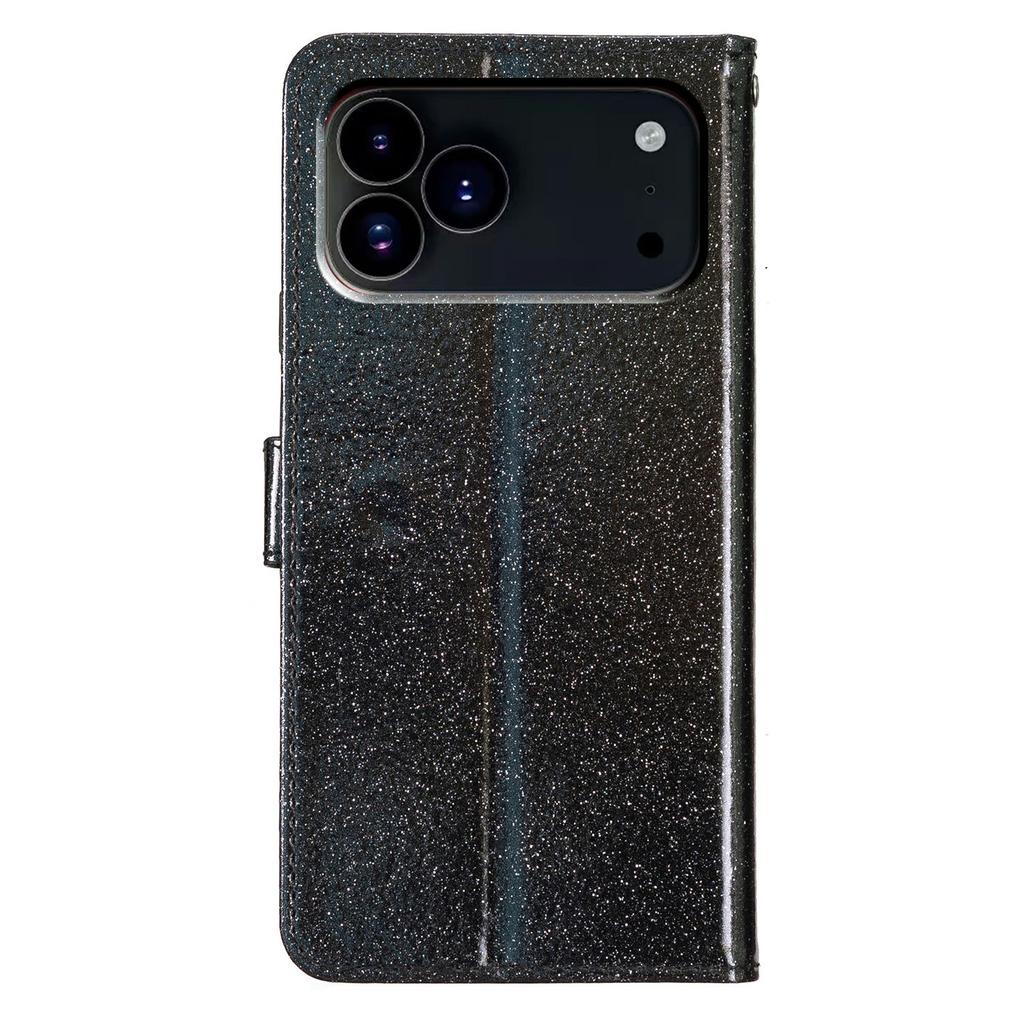 For iPhone 17 Pro Max Wallet Case Glitter Anti-Scratch Leather Stand Phone Cover with Strap
