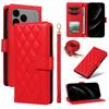 For iPhone 17 Pro Max Wallet Case Rhombus Leather Phone Cover with Strap
