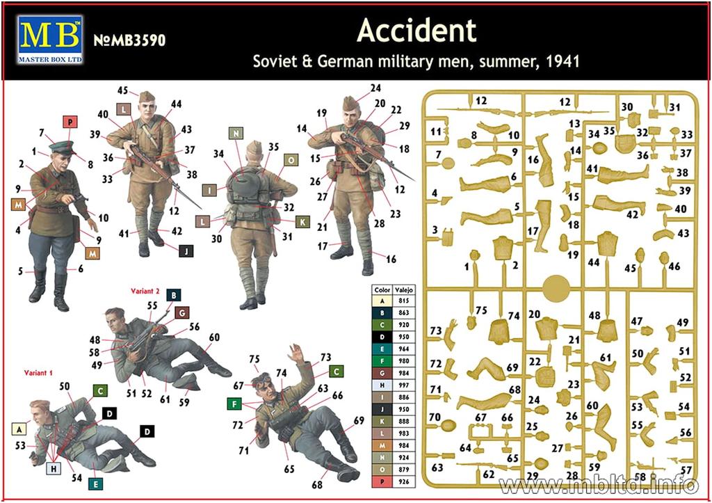 Master Box Accident 2 German 3 Soviet Accident Plastic MB35090 1/35 German-Soviet - Soldiers, Soldiers, Encounter, Model,