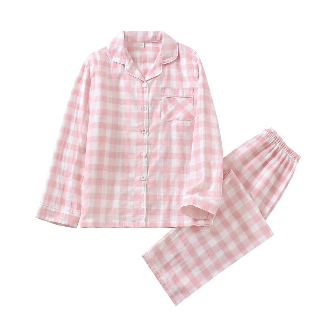 Длинный двойной верх и низ для лета и осени [ЛЕВАНА] Женская пижама, рукава, 100% хлопок, марля, комплект, одежда, мягкий, впитывающий,