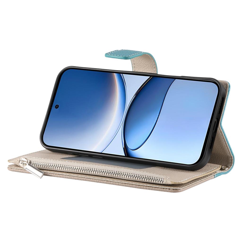 Чехол-книжка из кожи с цветной вставкой и кошельком на молнии для Xiaomi Redmi Turbo 4 Pro 5G/Poco F7 5G со шнурками