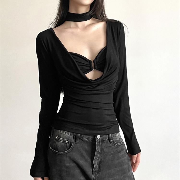 VAYLA Простая Тонкая Повседневная Мягкая Универсальная Облегающая Сексуальная Зрелая Красивая Уличная Женская Осенняя Короткая Базовая Футболка Топ