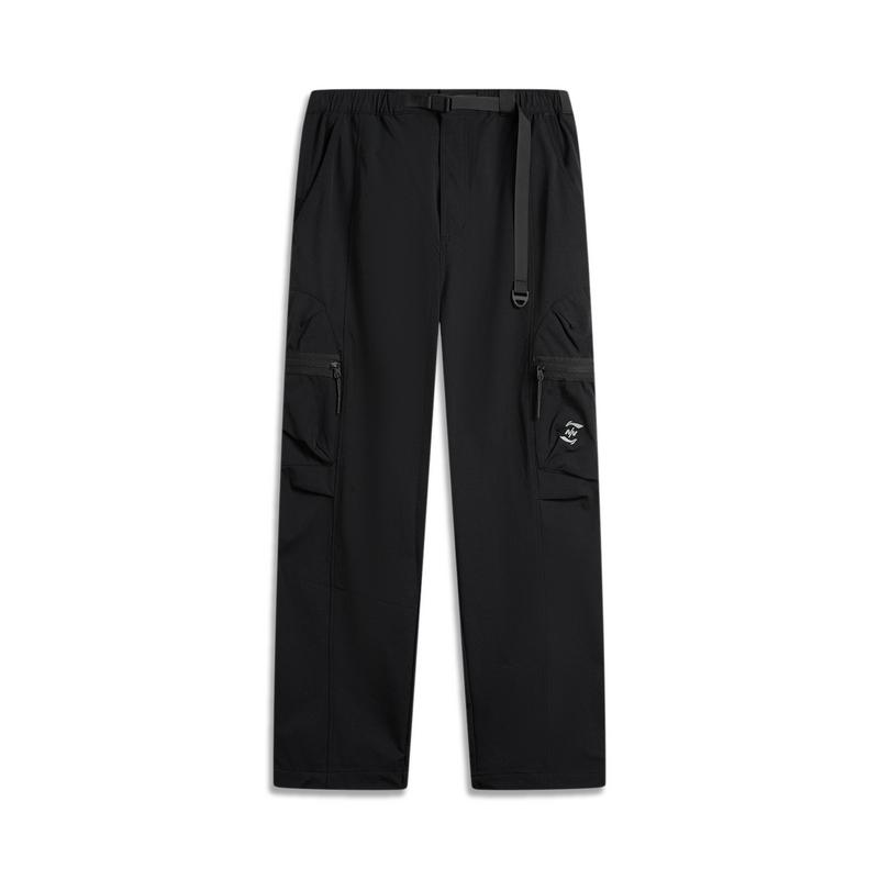 Li-Ning Однотонные универсальные дышащие брюки прямого кроя средней посадки для мужчин, низ, черный AKXU651-4