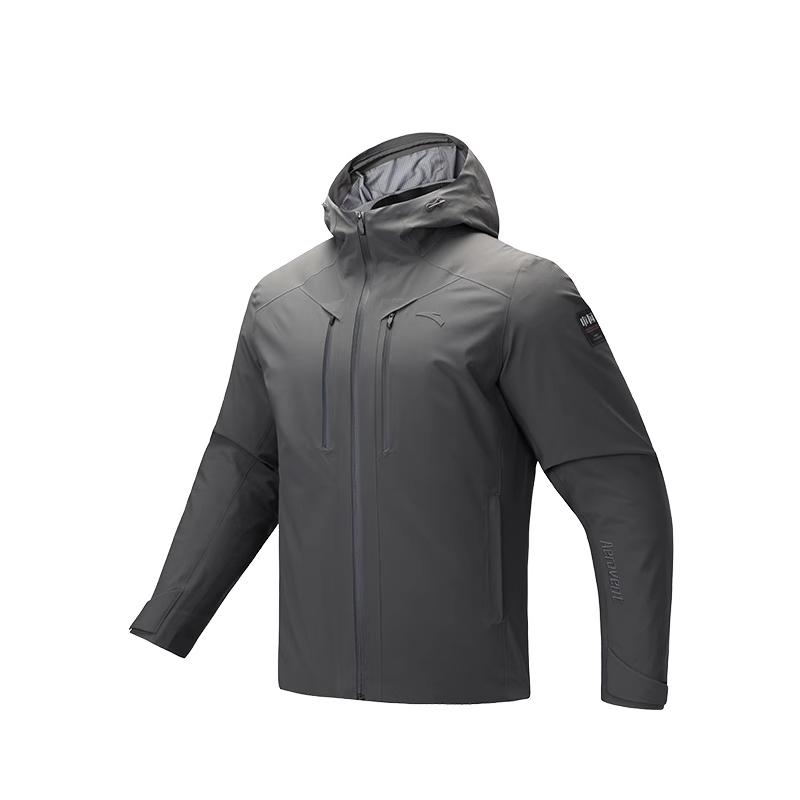 Anta Серия Тренировки Однотонная Толстовка на Молнии с Капюшоном Удобная Универсальная Повседневная Ветрозащитная Водонепроницаемая Куртка Мужская Куртка Дымчато-Черный Серый 152447621-7