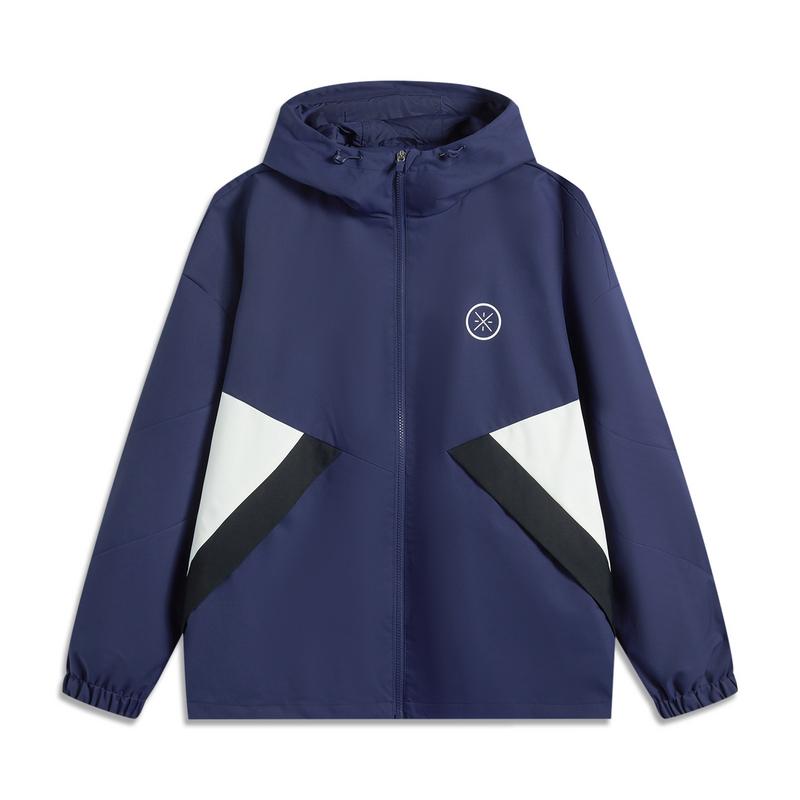 Li Ning Серия Уэйда Удобный Повседневный Худи Простой Свободный Цветной Блок Ветровка Мужская Верхняя одежда Темно-синий AFDV853-4