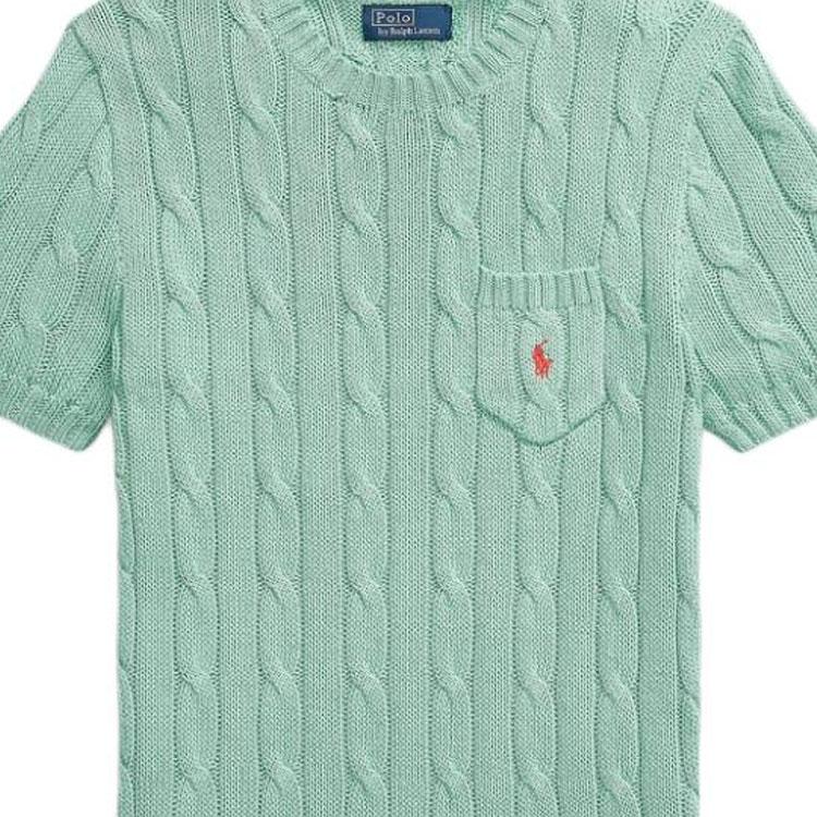 Женский свитер Polo Ralph Lauren Slim Fit, хлопковый, с кабельным узором, с коротким рукавом, аквамариновый, WMPOSWENC021245-300