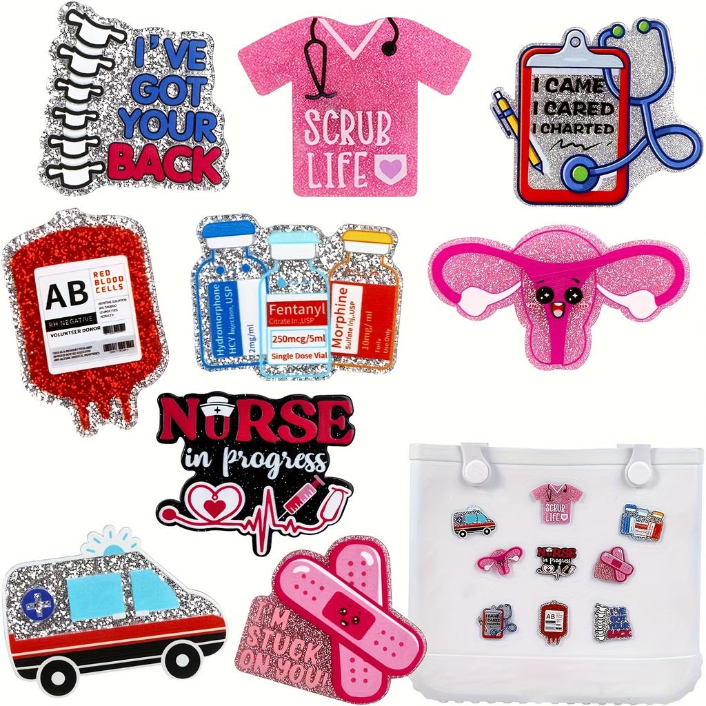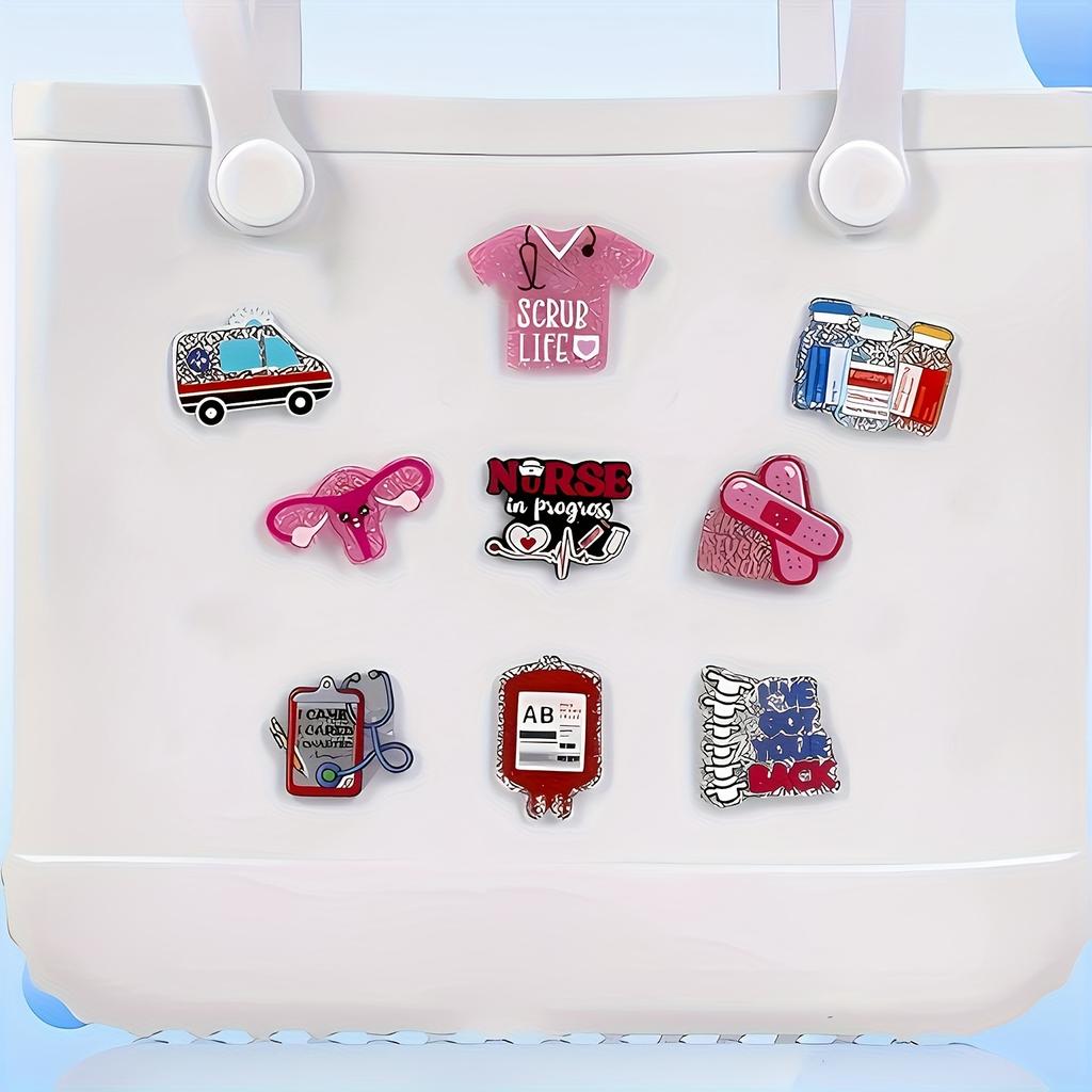 9 шт. Медсестринские аксессуары для пляжной сумки, сумок Simply Southern и подобных стилей. Акриловые вставки-шармы для резиновых пляжных сумок, изготовление кошельков своими руками