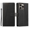 DF-06 For iPhone 16 Pro Wallet Case Line Imprint Shockproof Phone Cover