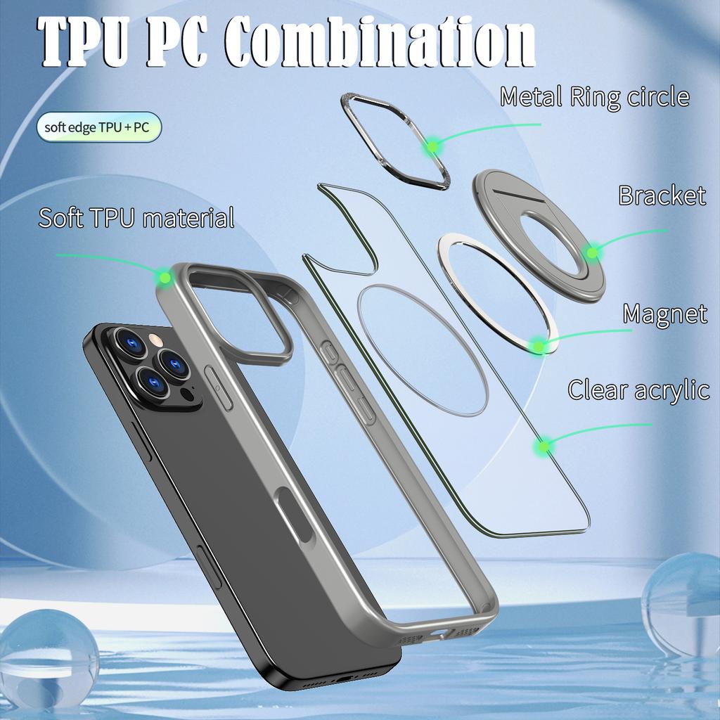 For iPhone 16 Pro Max Kickstand Case TPU+PC Clear Back Phone Cover Compatible with MagSafe