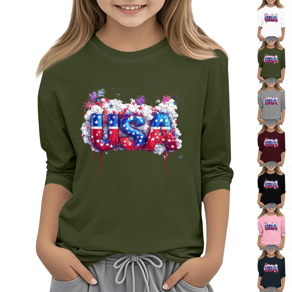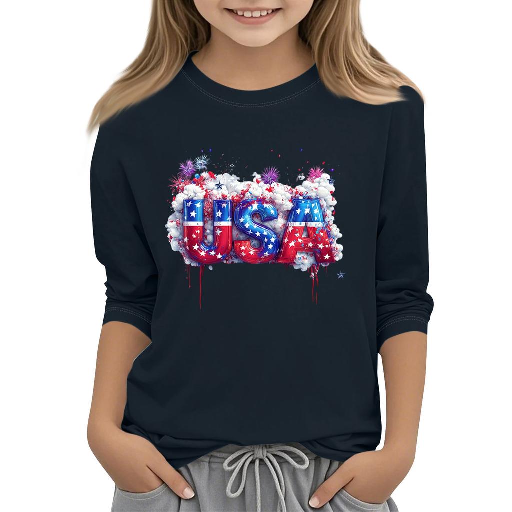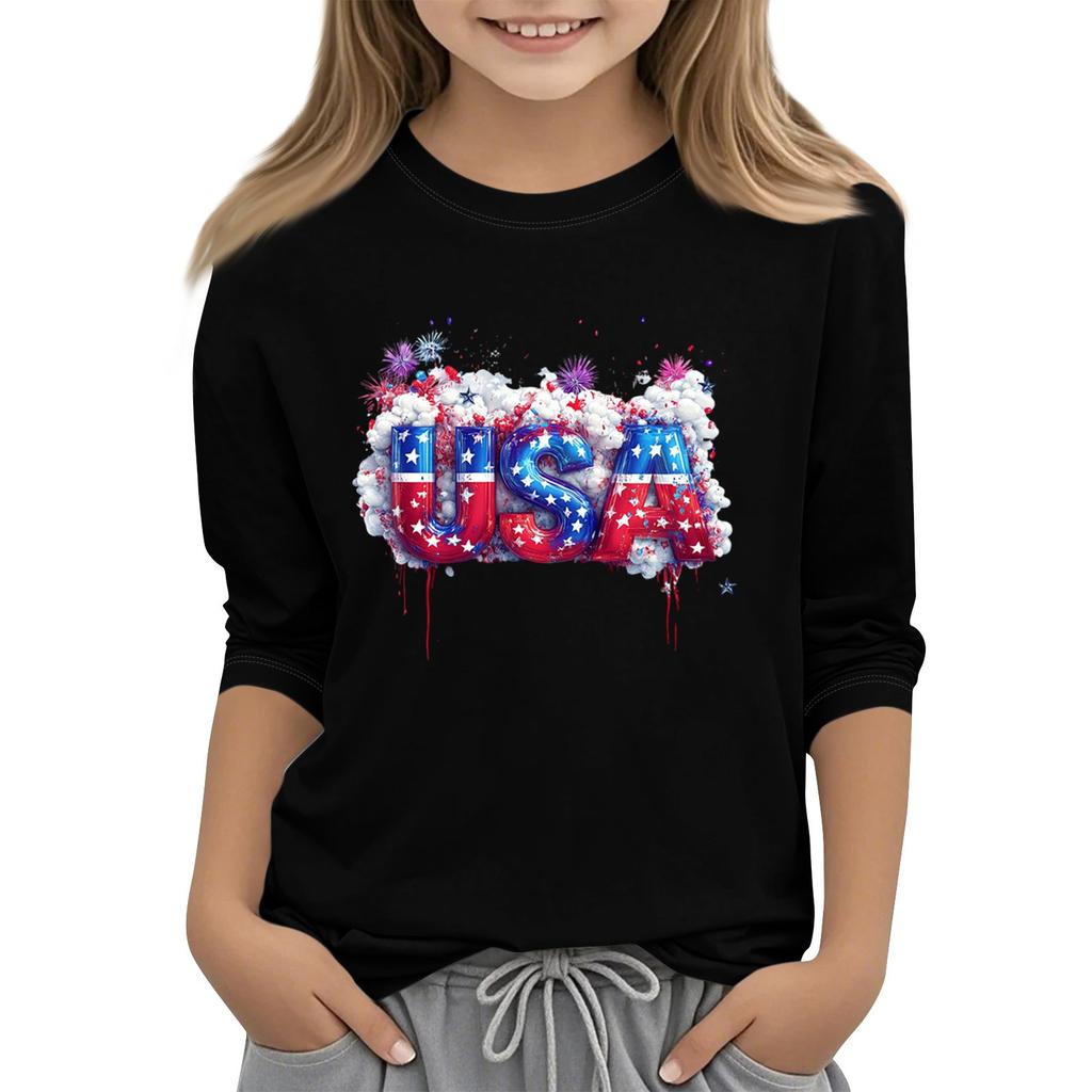 Детская повседневная футболка с круглым вырезом и принтом «День независимости» с рукавом 3/4