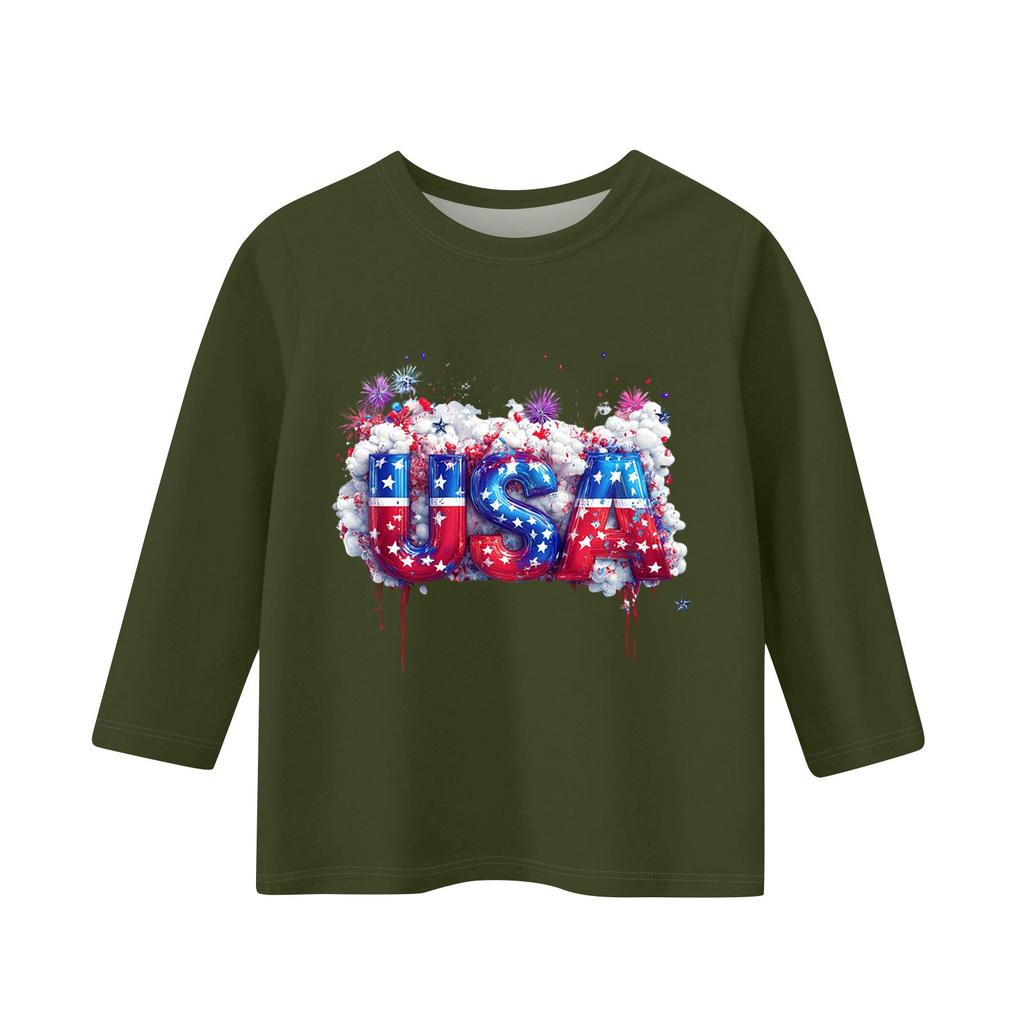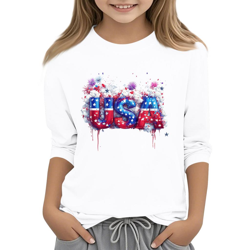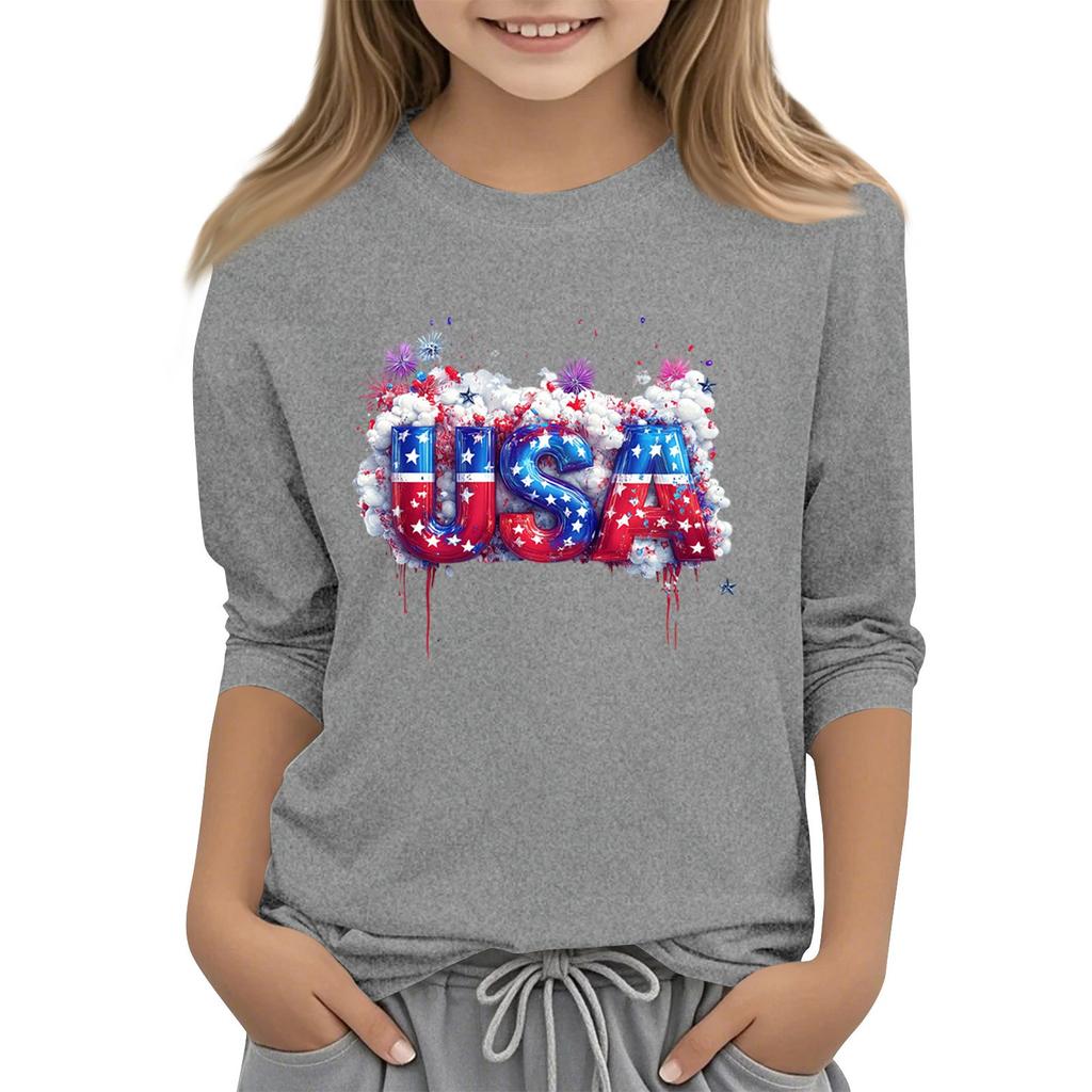 Детская повседневная футболка с круглым вырезом и принтом «День независимости» с рукавом 3/4