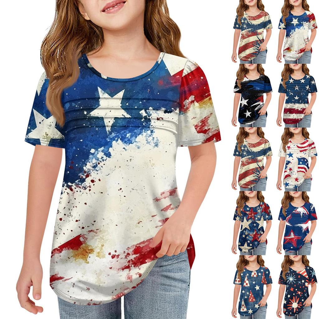 Детская плиссированная футболка с коротким рукавом, летняя футболка с круглым вырезом и принтом «День независимости» — купить товар онлайн с бесплатной доставкой до всему миру!