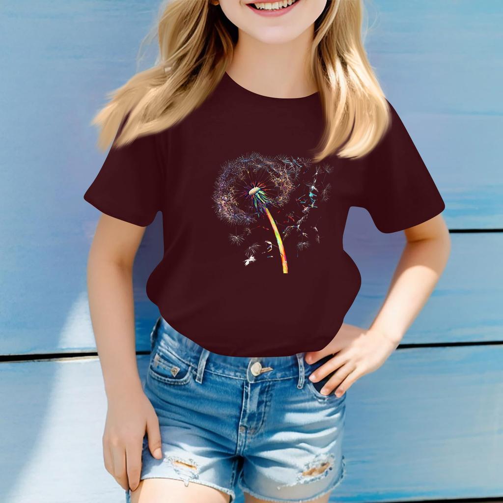 Детская повседневная футболка с круглым вырезом и мелким цветочным принтом, короткий рукав