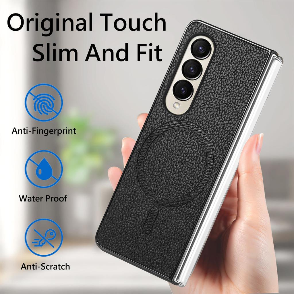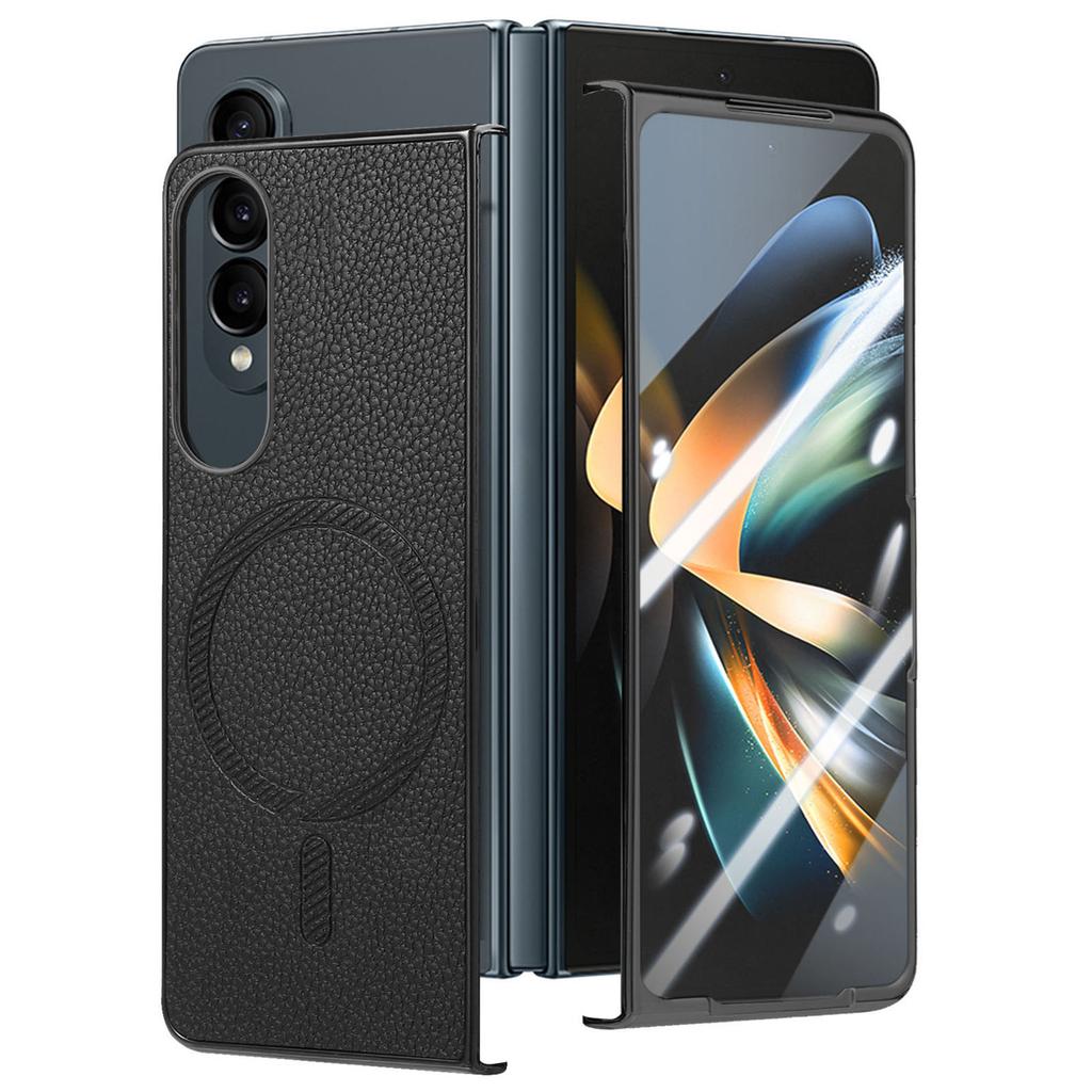 For Samsung Galaxy Z Fold4 5G Magnetic Case Leather+TPU Phone Cover with Screen Film
