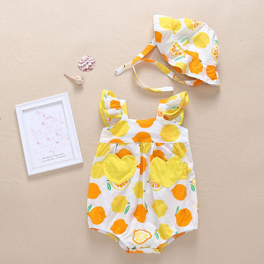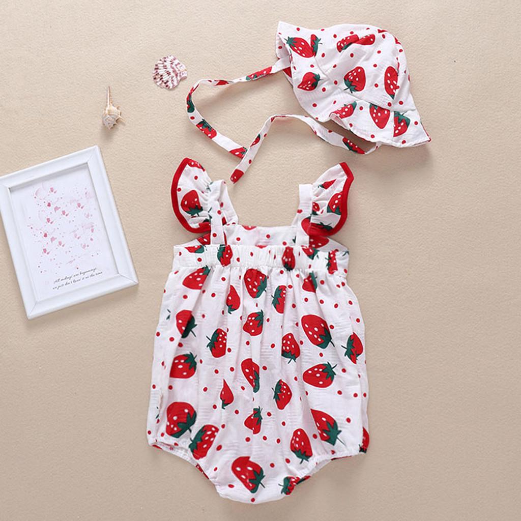 Новорожденный Младенец Девочки Ремешки Печать Ромпер Солнцезащитный костюм Шляпа Боди Описание продукта:
