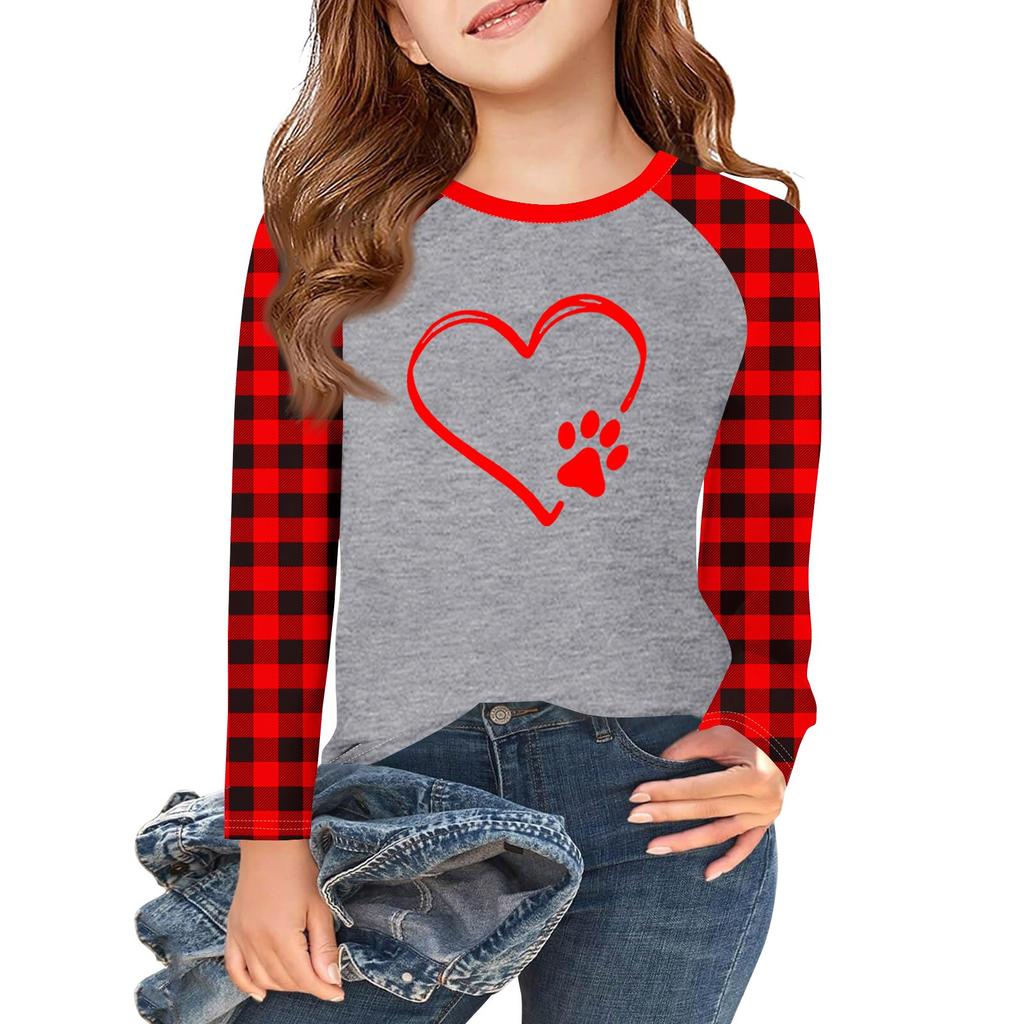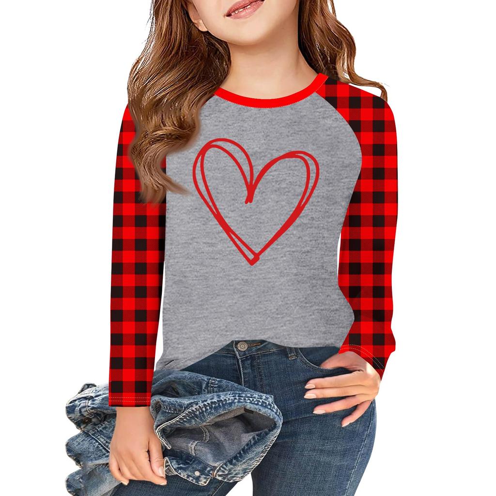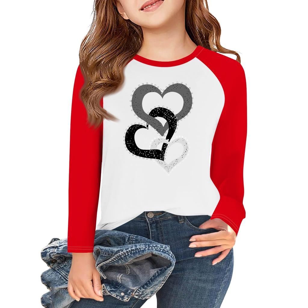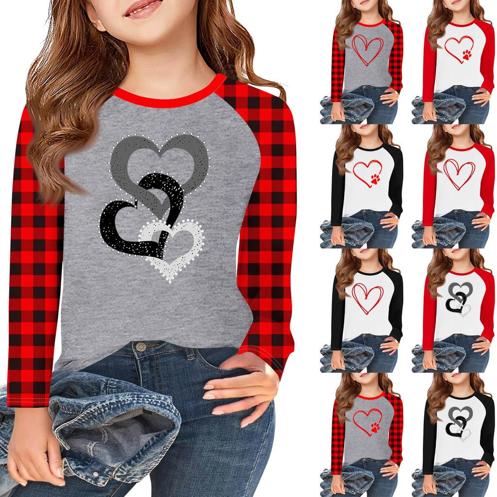Футболки с длинным рукавом для девочек Love ко Дню святого Валентина, детские осенние топы с круглым вырезом, базовые футболки для детей 5-14 лет