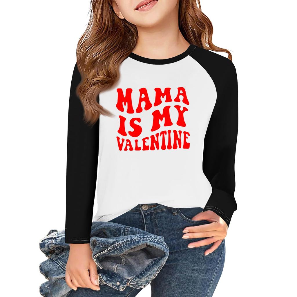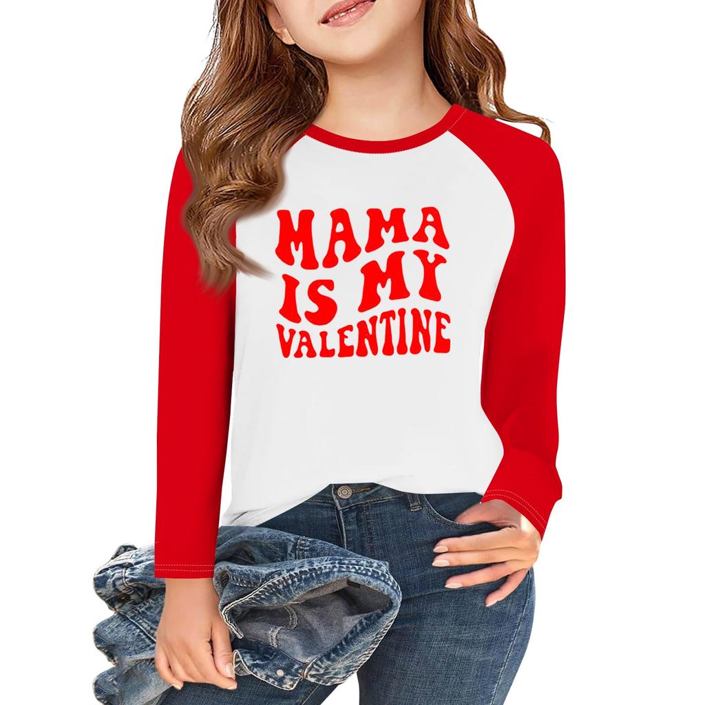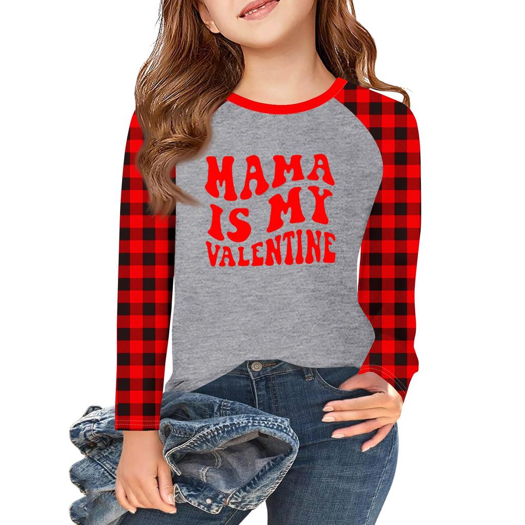 Футболки с длинным рукавом для девочек Love ко Дню святого Валентина, детские осенние топы с круглым вырезом, базовые футболки для детей 5-14 лет