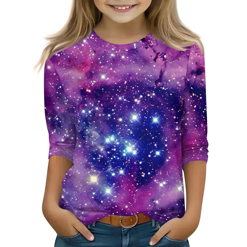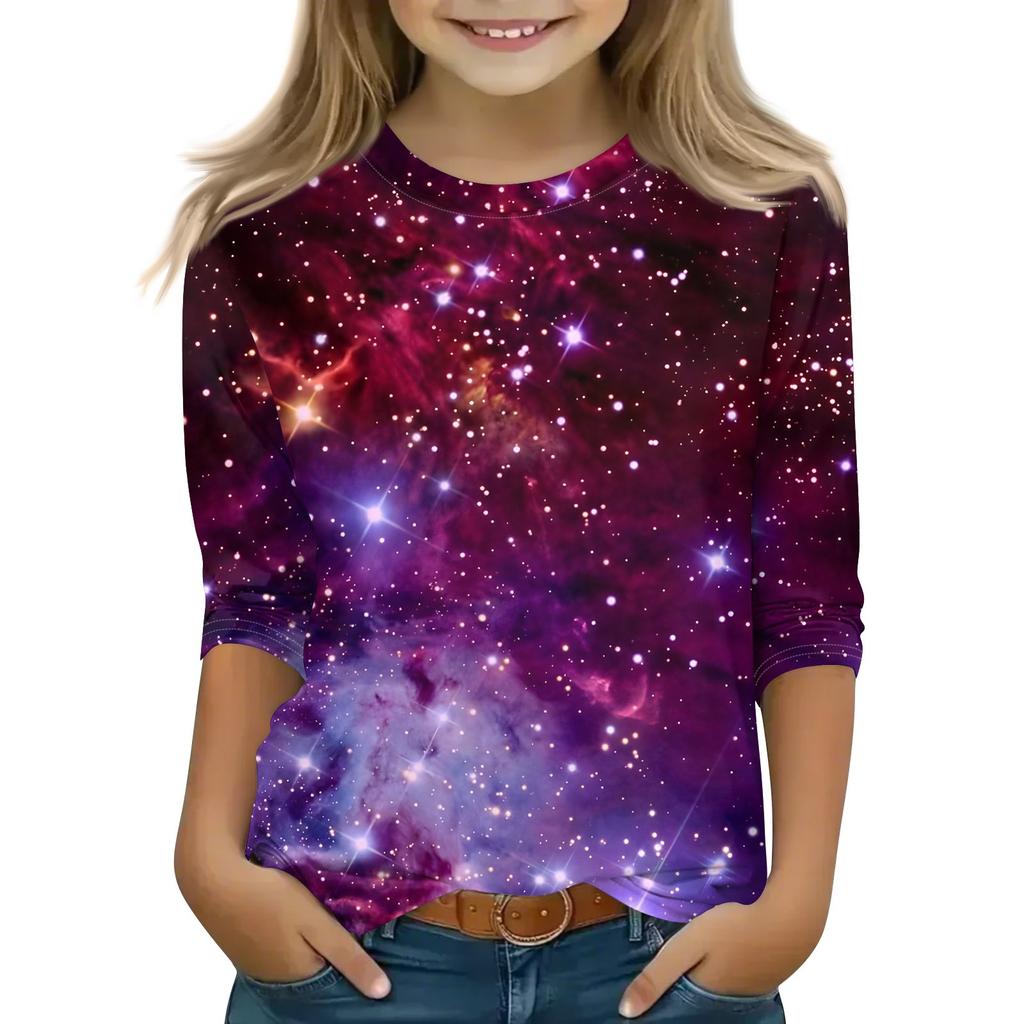 Топы с принтом для девочек 5-16 лет с круглым вырезом и рукавами 3/4 Футболки Модные топы Наряды Футболки