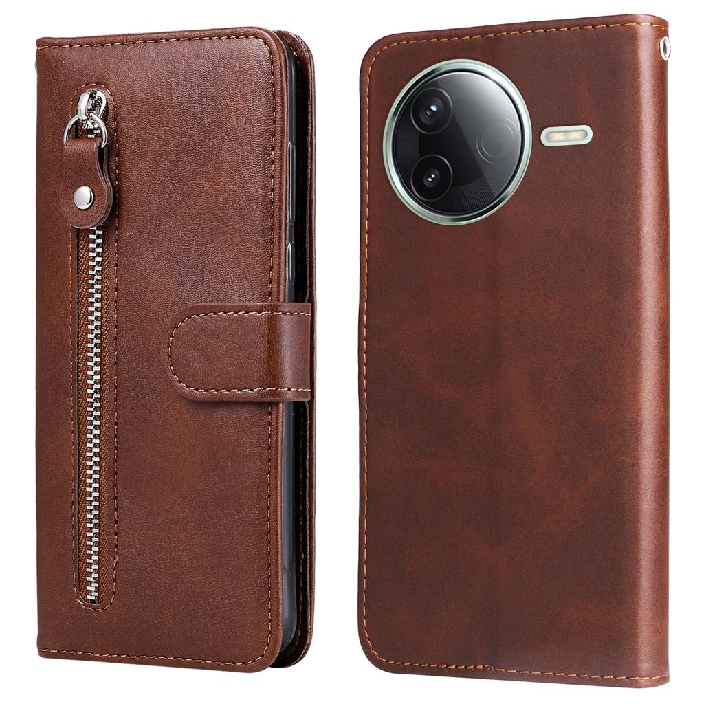 Чехол-книжка для Xiaomi Poco F7 Pro 5G/Redmi K80 5G, кошелек на молнии, текстура телячьей кожи, чехол для телефона из полиуретановой кожи