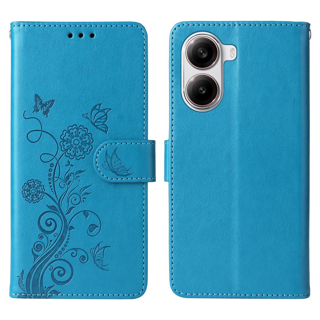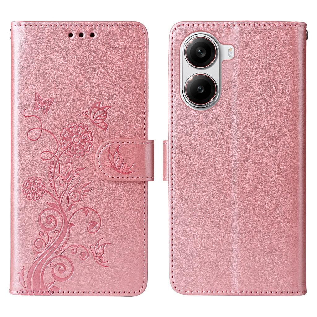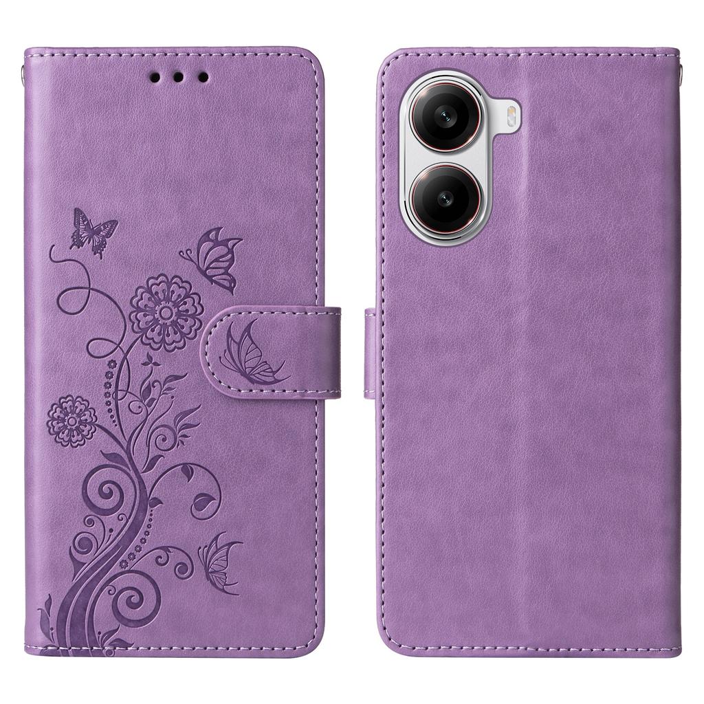 Для Xiaomi Redmi Turbo 4 5G/Poco X7 Pro 5G Кожаный чехол Бабочка Цветочный оттиск Кошелек Подставка Обложка