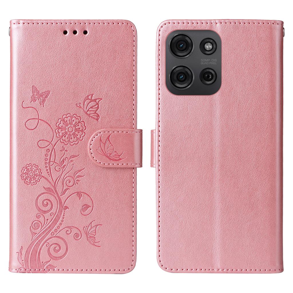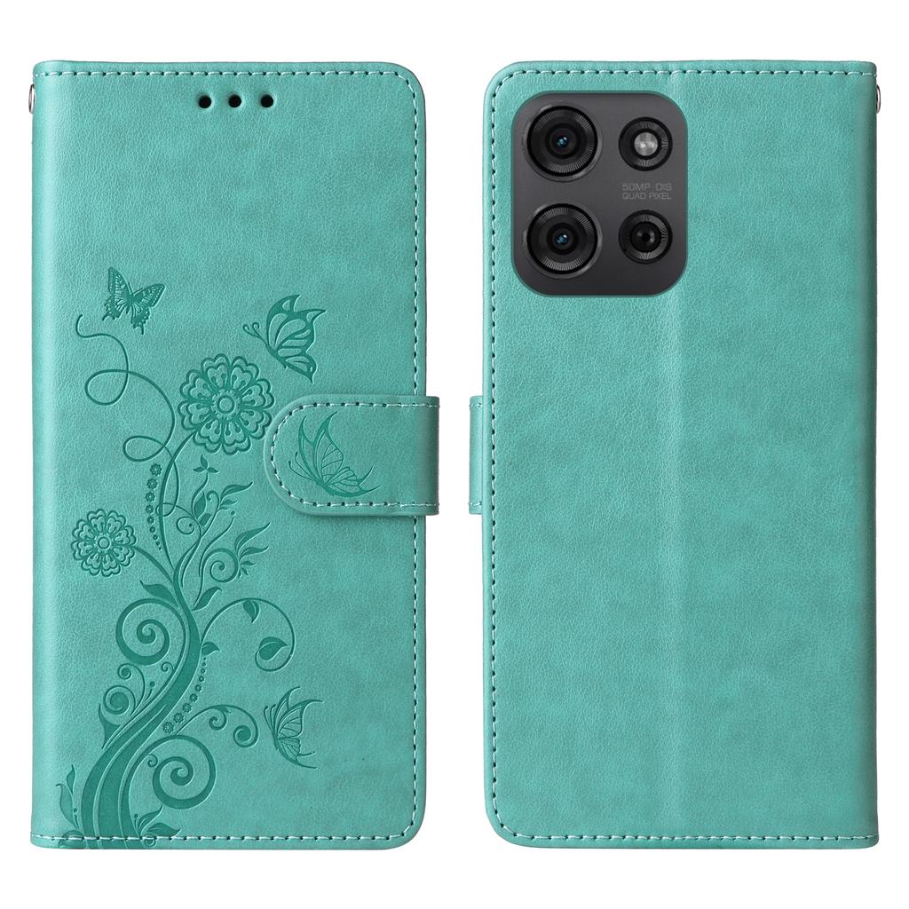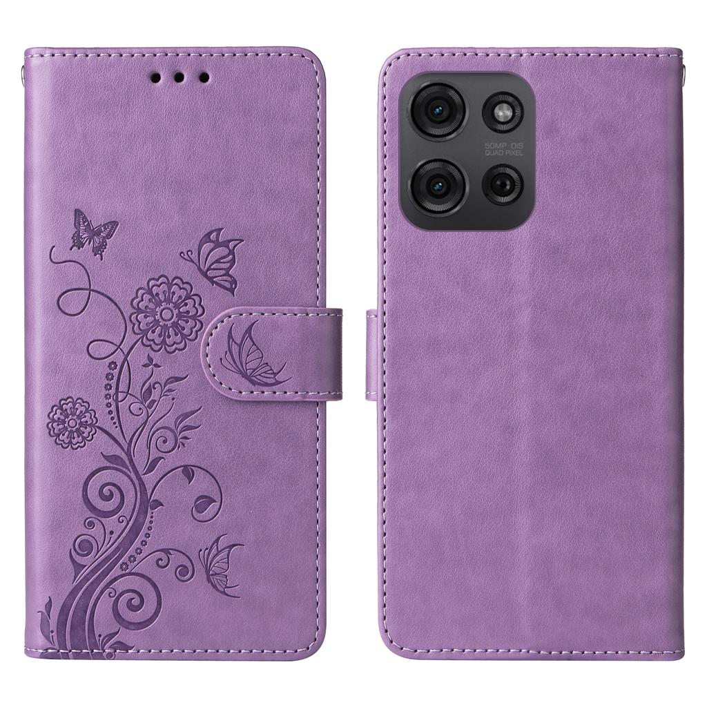 For Motorola Moto G75 5G Leather Case Butterfly Floral Imprint Wallet Stand Cover