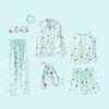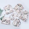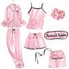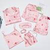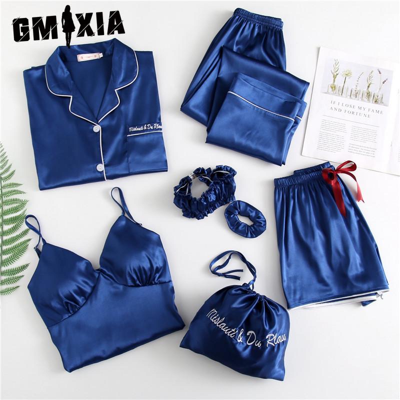 GMXIA Пижамный комплект из 7 предметов из искусственного шелка с клубничным принтом, Комплект из 7 предметов шелковой пижамы для весны, лета и осени, Домашняя одежда, Пижамные комплекты