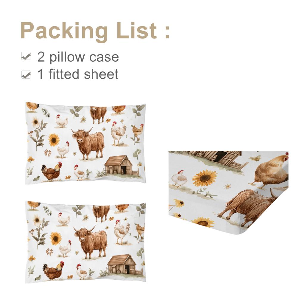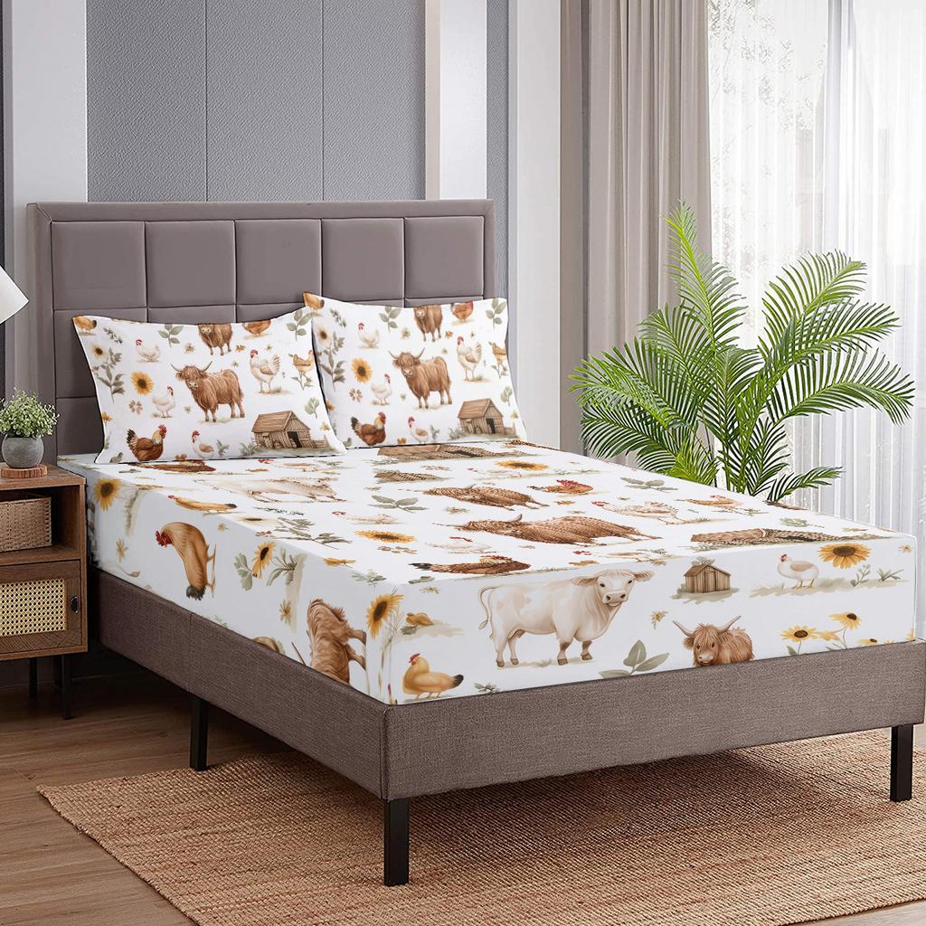 Коровий Куриная Ферма Узор Постельный Комплект из Трех Предметов с Двумя Наволочками, Подходит для Кроватей в Спальне (Традиционный, Праздничный подарок)